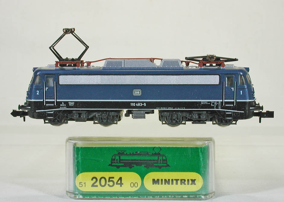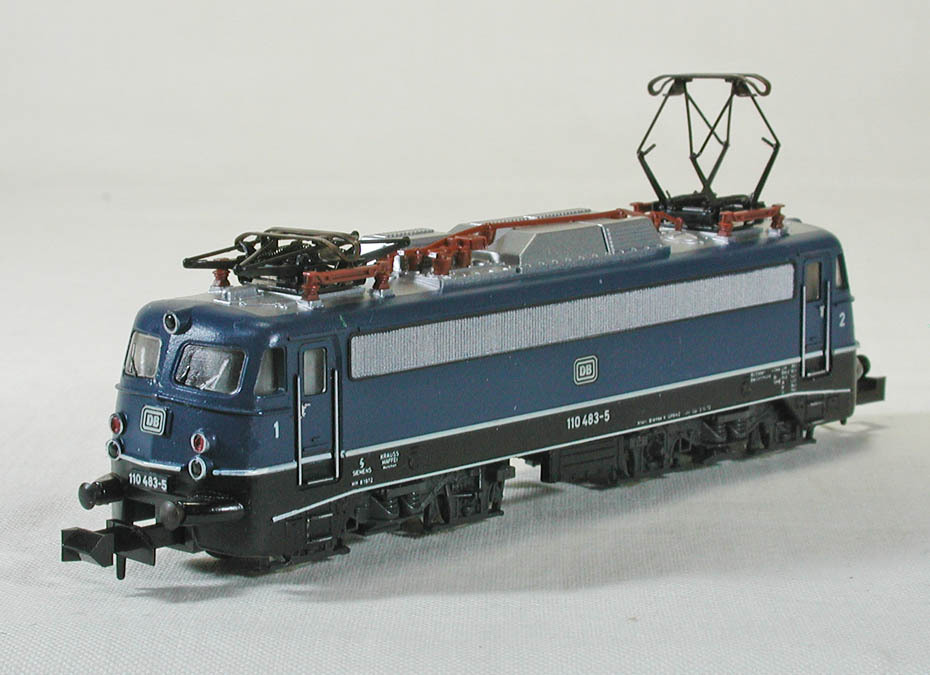 型になったシリーズで1997年からは地域輸送用にシャトル列車用の制御装置が設置等の改造が施されました。 BR110型電気機関車は、1968年に型式番号のコンピュータ化時に付与されたE10型電気機関車の新しい型式番号になります。E10型電気機関車は、老朽化した多種の旧型電気機関車を置換するための標準型機関車として1952年に5輌が試作されE10.0シリーズと命名 されました。この試作機5輌は、それぞれ異なった方式をテストするためにE10 001号機が機械部分をクラウス·マッフェイ社(Krauss-Maffei)、電気部分をAEGでアルストムジョイントレバードライブを備え、E10 002号機が機械部分をクルップ社(Krupp) 、電気 部分をBBCでディスクドライブを備え、E10 003号機が機械部分をヘンシェル社(Henschel) 、電気部分をSSWでスラットアクチュエータを駆動を備え、E10 004と005は、機械部分をヘンシェル、電気部分をAEGではアルストムジョイントレバードライブを備えて製 造され、1975年から1979年に廃車となってしまいました。ただ、E10 002号機とE10 005号機が博物館で保存されています。この試作機の運用結果をベースに1956年からE10.1シリーズとしてクルップ、ヘンシェル、クラウス=マッファイ、シーメンス、AEG、 BBCによって、420輌近くが幾つかのバリエーションで量産されました。比較的初期の車両番号101号~287号までの”カステン/箱(Kasten)と称される角張った車体形態での登場、216号機から大きな1灯から小さな2灯ライト (ヘッドライトとテールライト)に置き換えら れ、288号機からは、E10.12 (ラインゴールド用の高速型)で導入された、空力的により有利な新しい機関車ボディ(いわゆる半流線型/クリースフロント) が導入されました。登場後は、特急列車からローカル列車までの広範囲に運用されて各地で活躍してましたが、2000年位 から廃車が開始され、2013年位までに全廃となってます。 このモデルは、コンピュータ番号化が行われた1968年からの標準的なBR110.3型電気機関車(2灯ライト半流線型)のブルーと塗装での装いとなっています。 この商品は、登場当時の初期逆への字型パンタグラフから変更された中期の製品で1985年以前の製造に成ります。構造がシンプルで保守し易いNゲージ初期の製品ですが、現在でも十分に通用すると思います。DCC導入予定の無い鉄道会社様にはお買い得かと考えます。当然です が、既に絶版と成ってます。 |