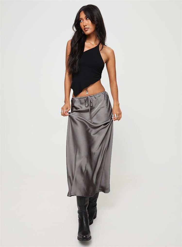 ロングスカート マキシ丈 シンプル スリム フィッシュテールスカート カジュアル レディース S グレー