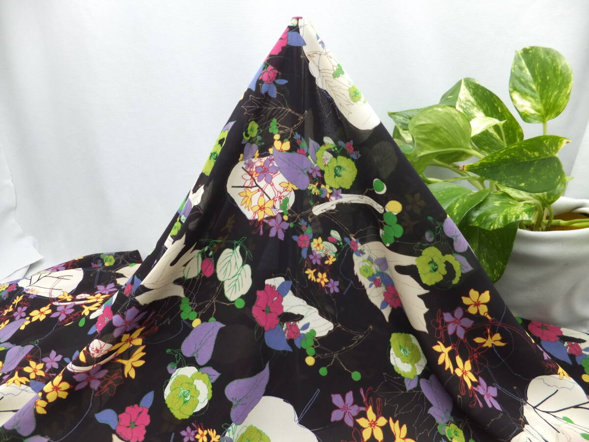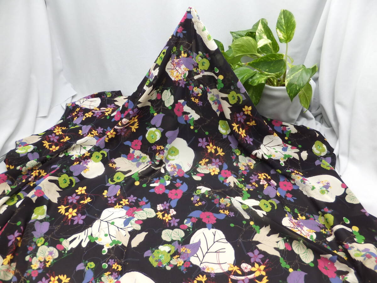 新入荷!掘り出し品!日本製 ブランド オリジナル!なかなか手に入らない!ポリエステル100%!花柄プリント地!ブラック!112cm巾×2m | |