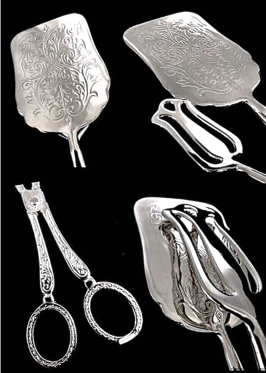 英国ビンテージ シルバーp サンドイッチ/サービングトング/パストリー/ケーキ/デザート はさみ型カトラリー アフタヌーンティー ZINC ALLO