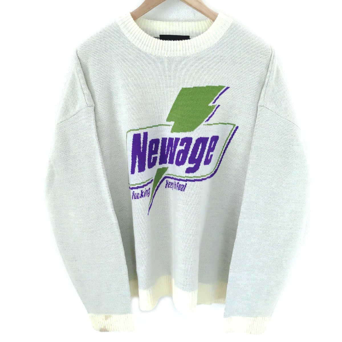 (^w^)b AIVER アイバー 長袖 クルーネック ロゴ ニット セーター プルオーバー トップス カジュアル ストリート 着回し ゴルフ 白 O15088DD