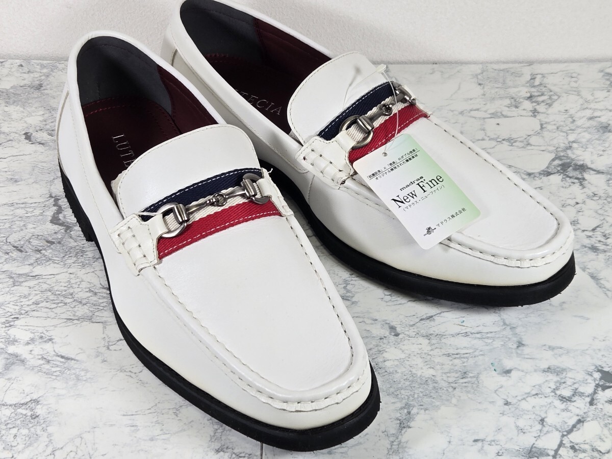 【新品未使用】★madras マドラス★LUTECIA★ビットローファー★26.0cm★ホワイト/トリコロール★本革★メンズ★カジュアルシューズ
