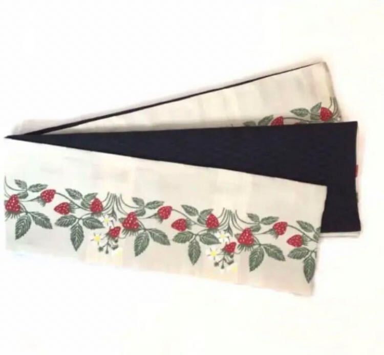 少し黄色味のあるグレーにいちご柄が個性的で、紬や小紋にオシャレに可愛く合わせられます。
