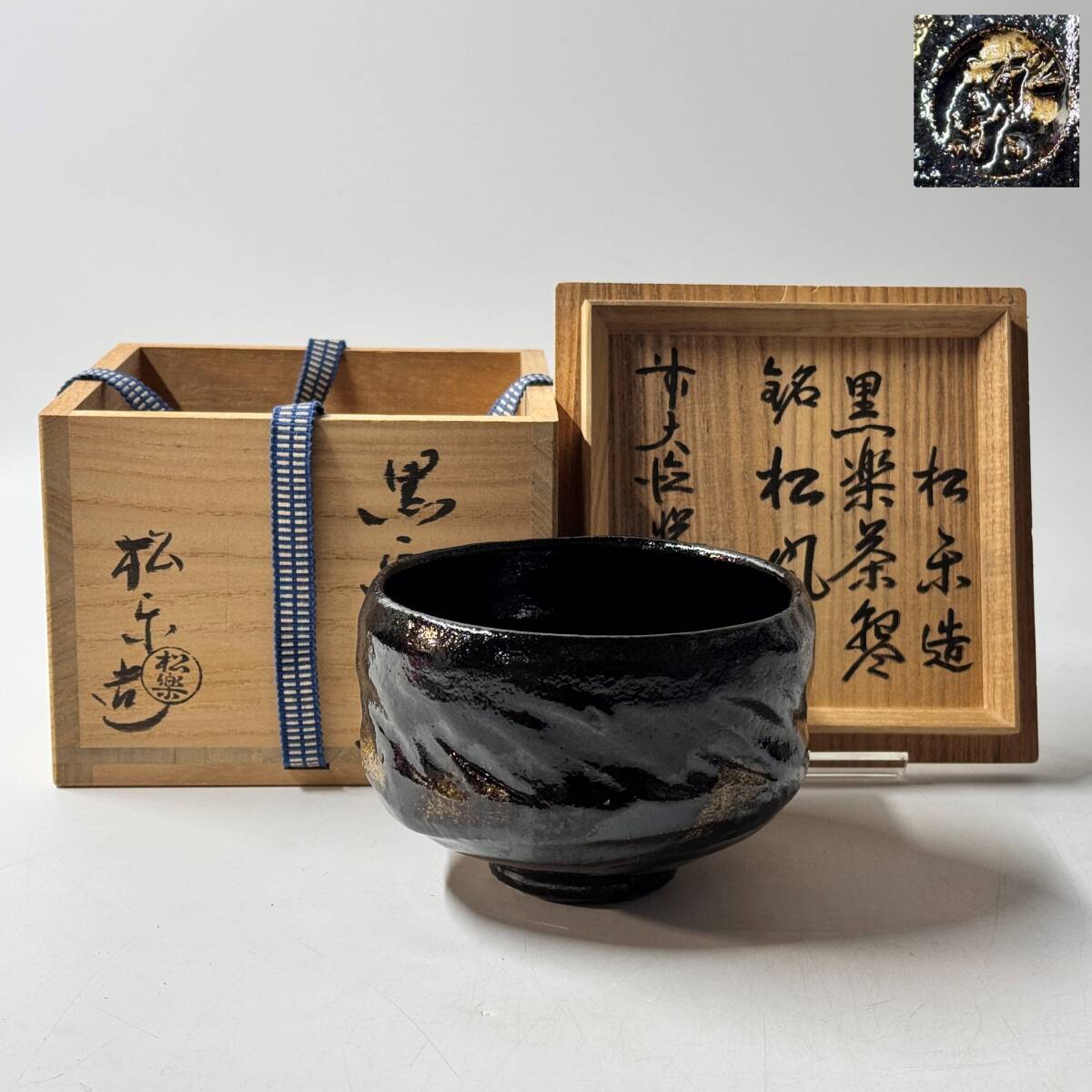 【63734Q】未使用 楽焼 佐々木松楽造 黒楽茶碗 銘:松風 前大徳寺高橋悦道書付 銘印在 印銘 抹茶碗 茶道具 茶器 共箱 経年保管品 現状品