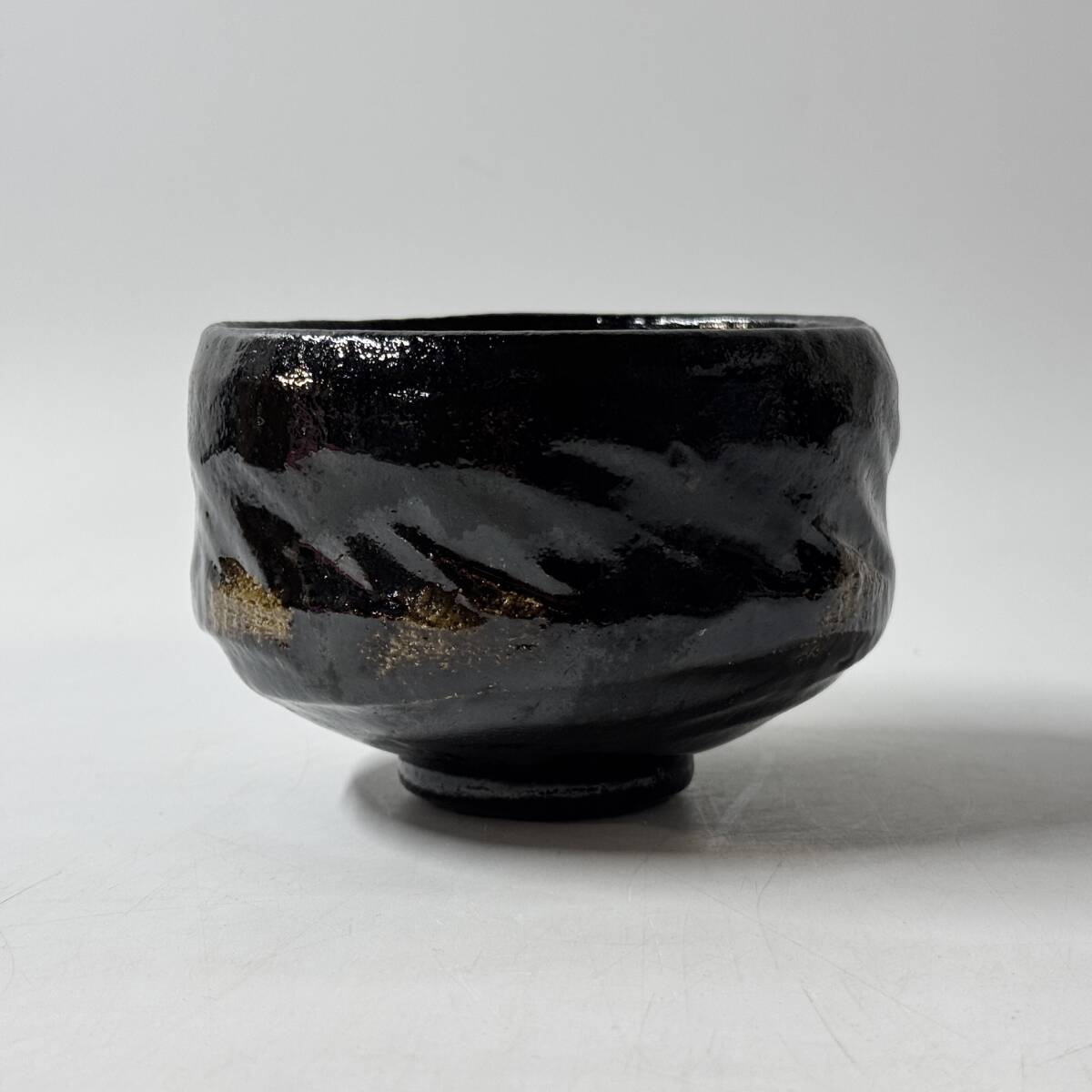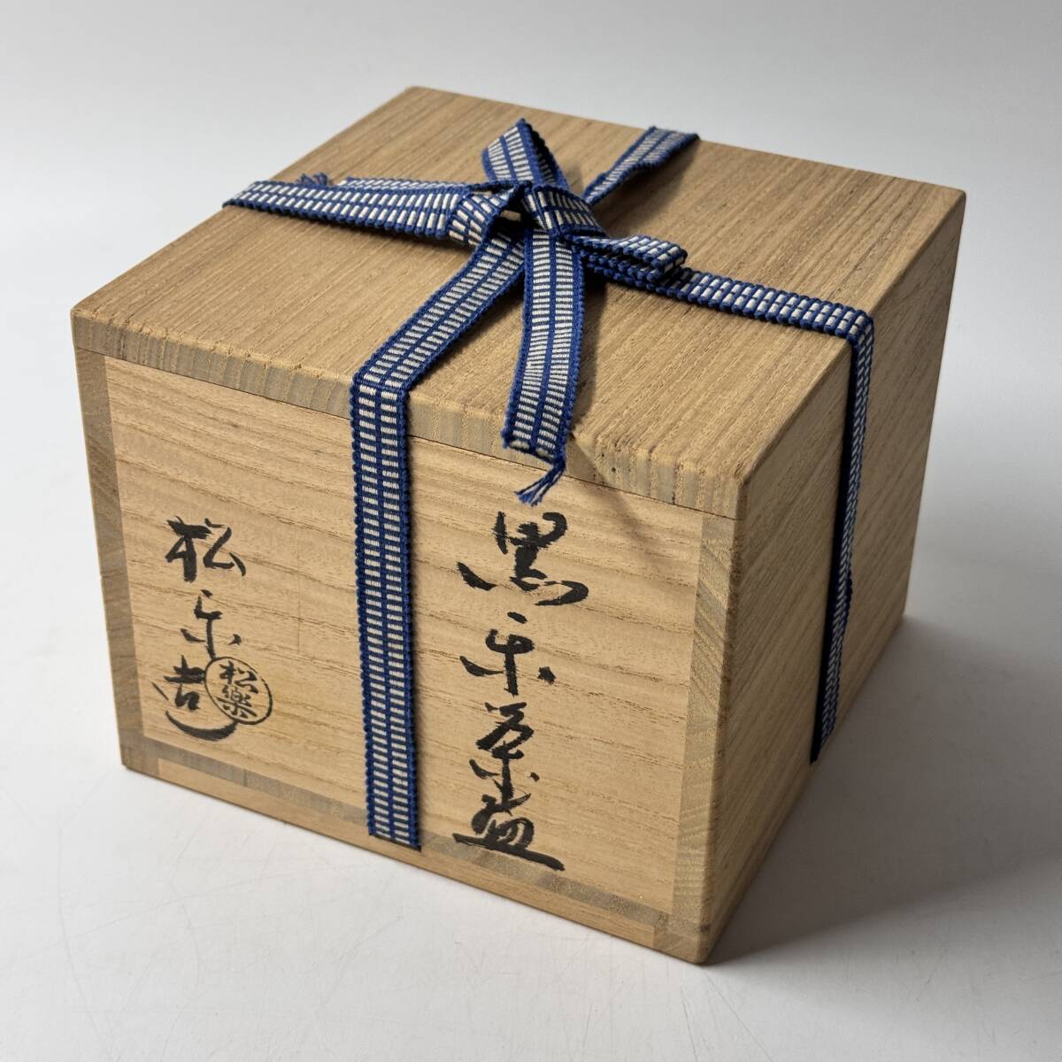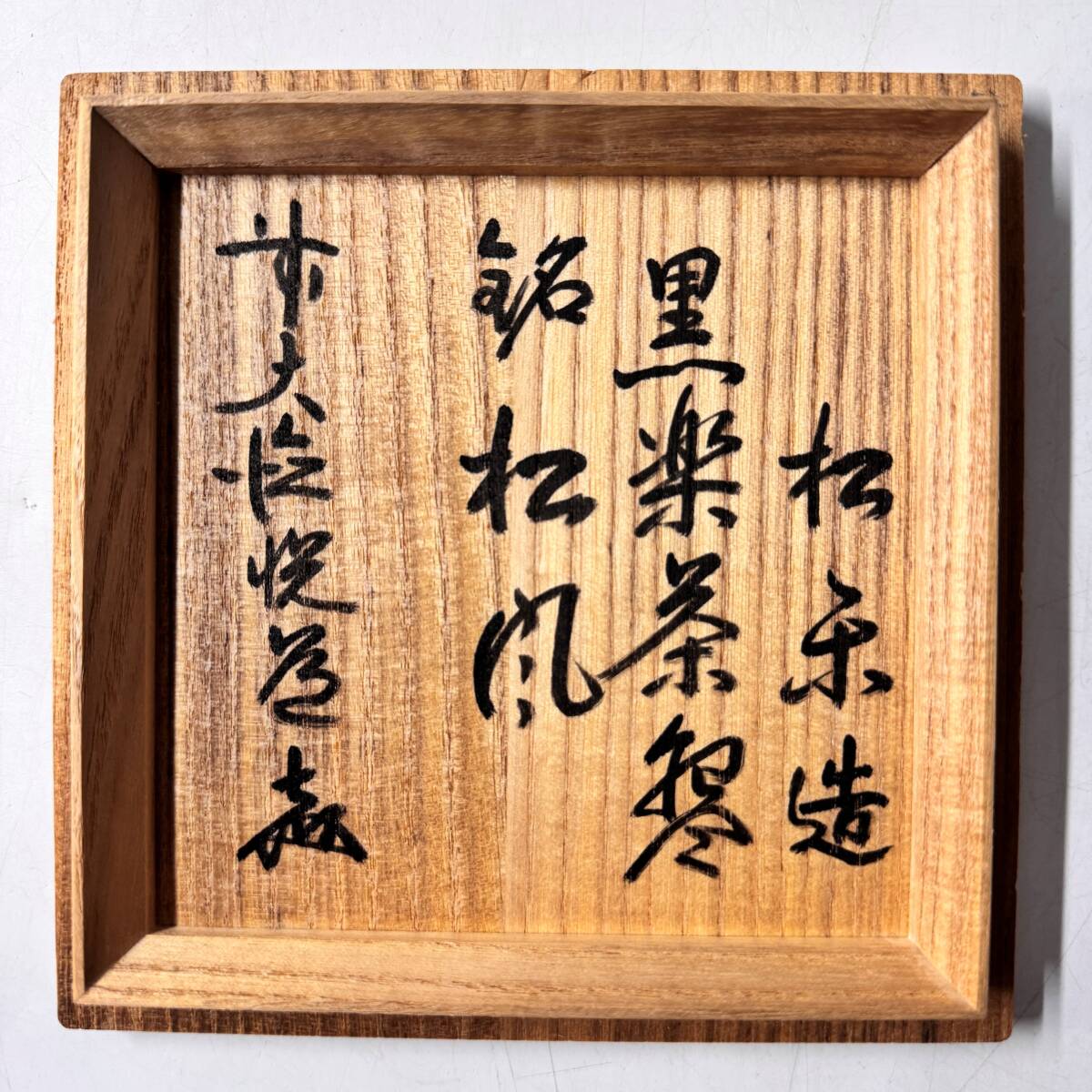 未使用 楽焼 佐々木松楽造 黒楽茶碗 銘:松風 前大徳寺高橋悦道書付 銘印在 印銘 抹茶碗 茶道具 茶器 共箱 経年保管品 現状品の出品です。
