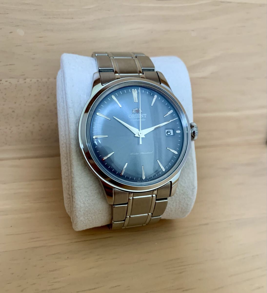 新しい『オリエントバンビーノ 38』は腕なじみの良い38.4mmケースにさまざまなシーンにマッチする爽やかなダイヤルカラーをメタルバンドと組み合わせました。
