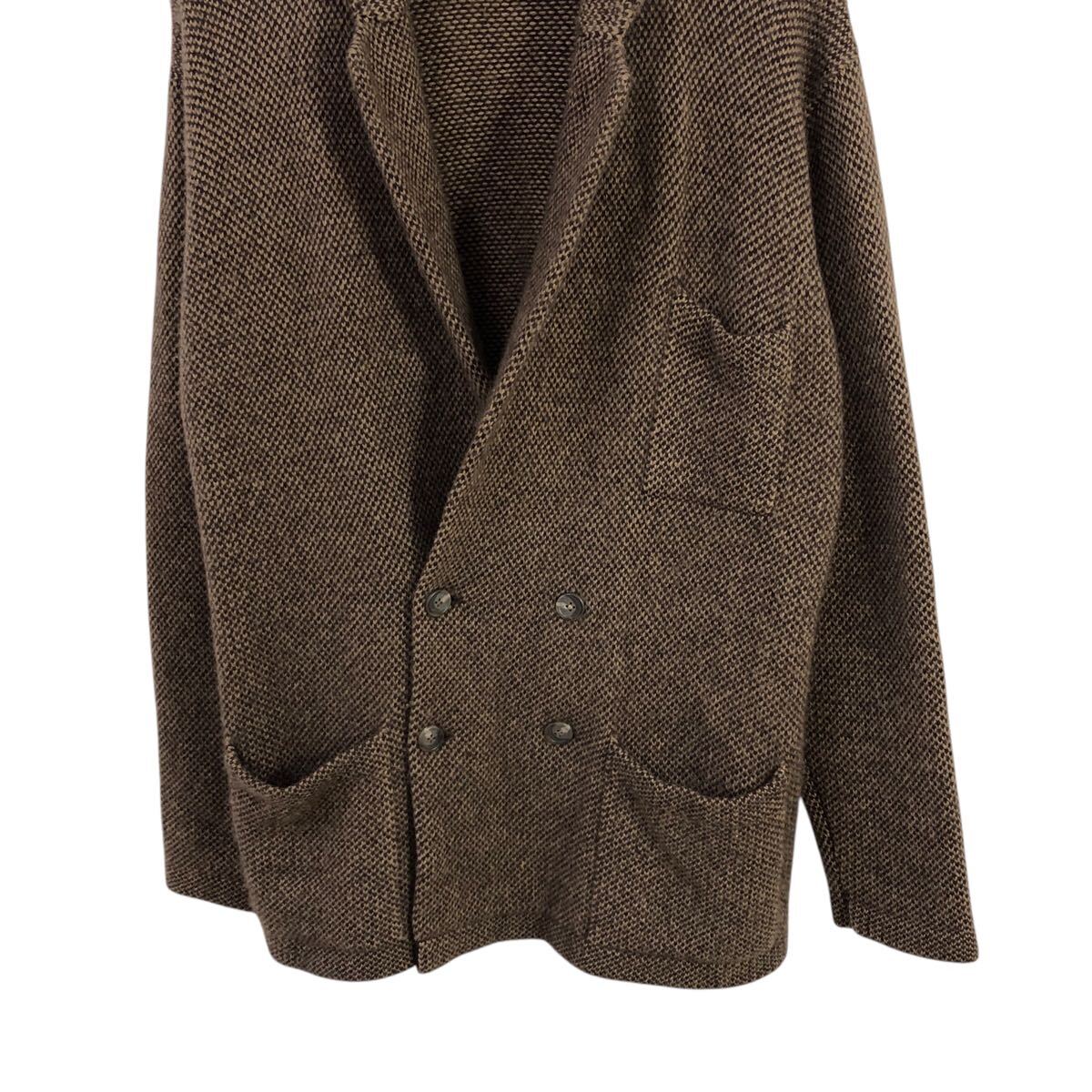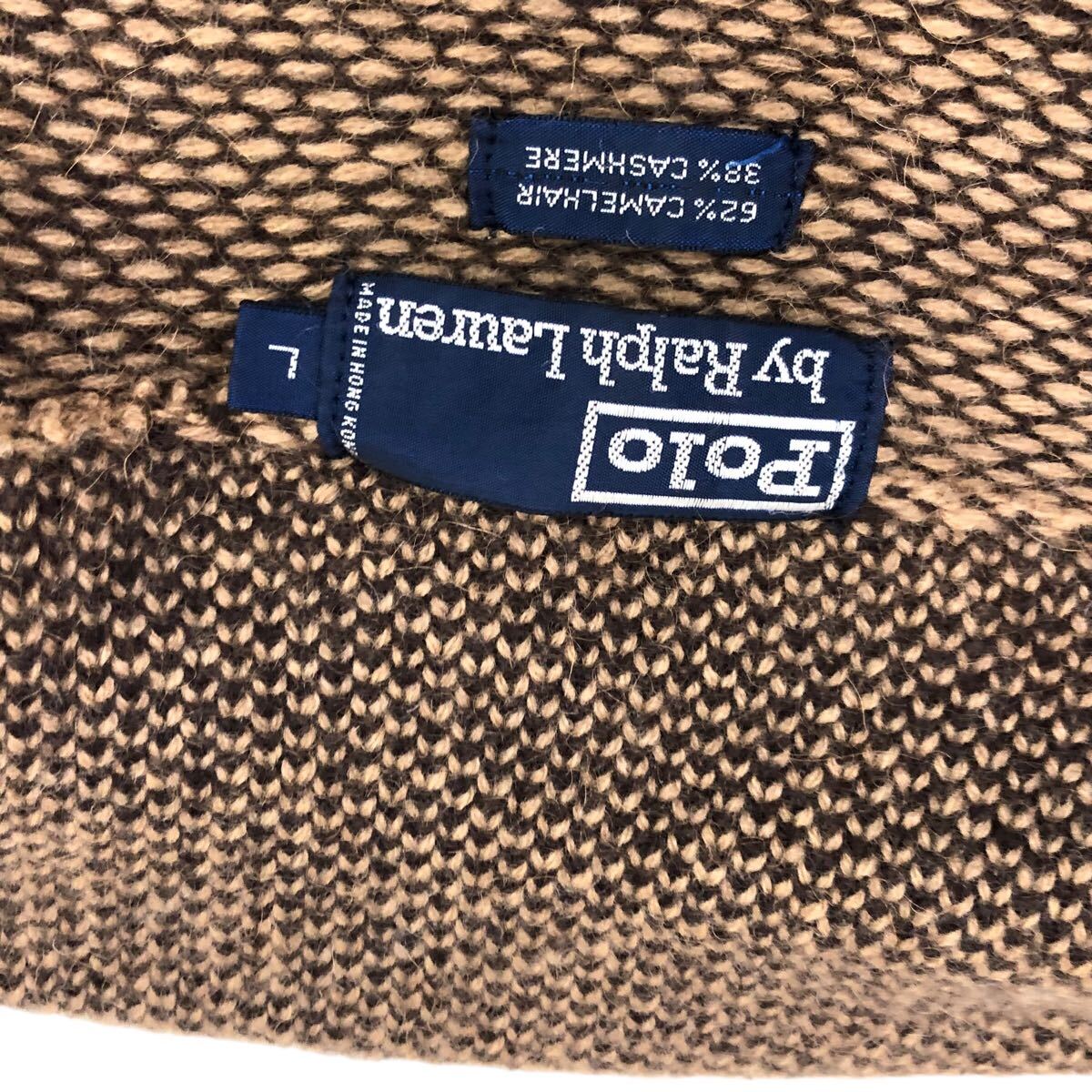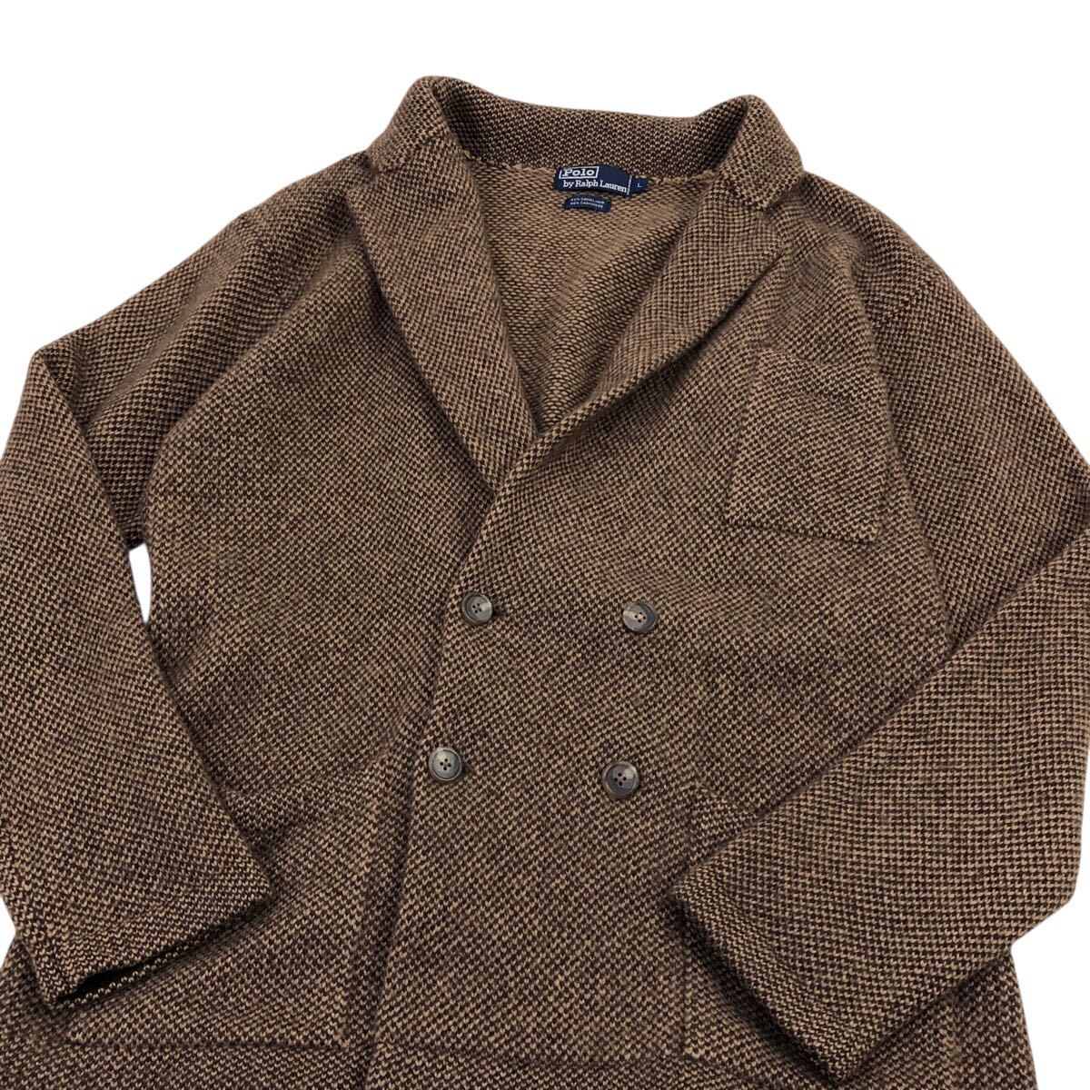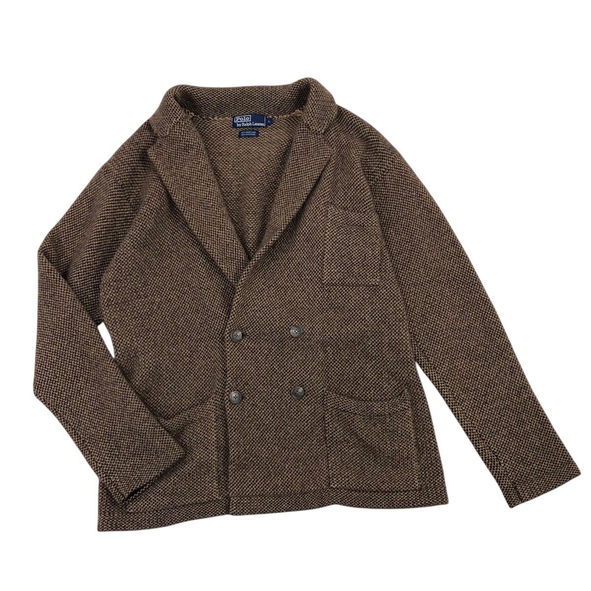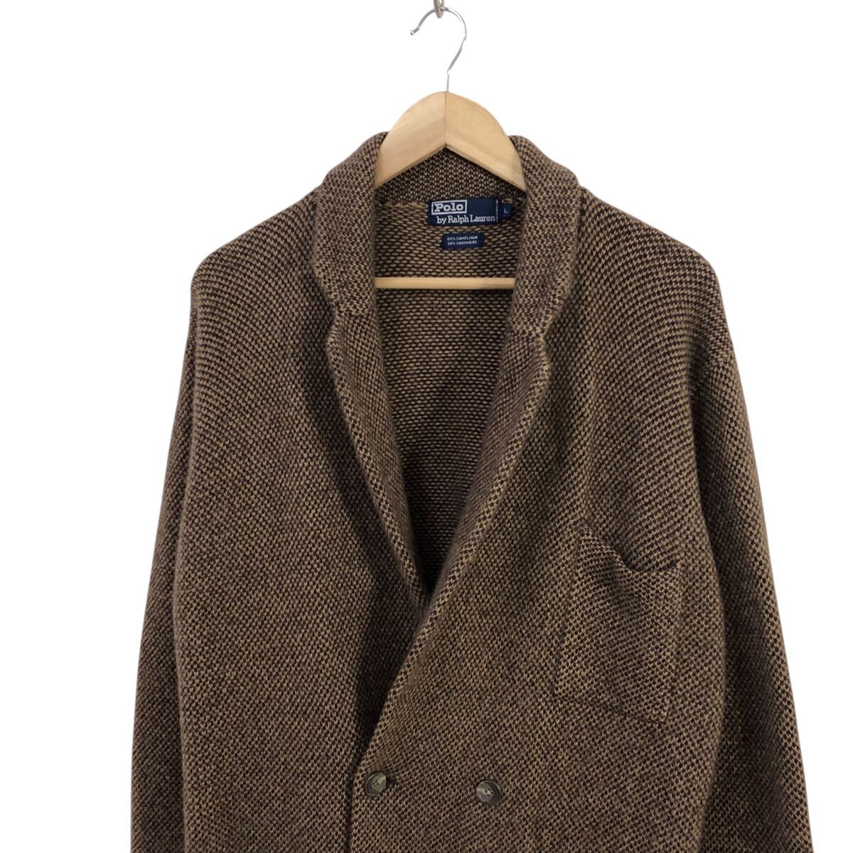 9H826-23 良品 Polo by Ralph Lauren ラルフローレン ナイガイ社製 カシミヤ キャメル混 ウール ダブル ニット ジャケット 茶系 メンズ L