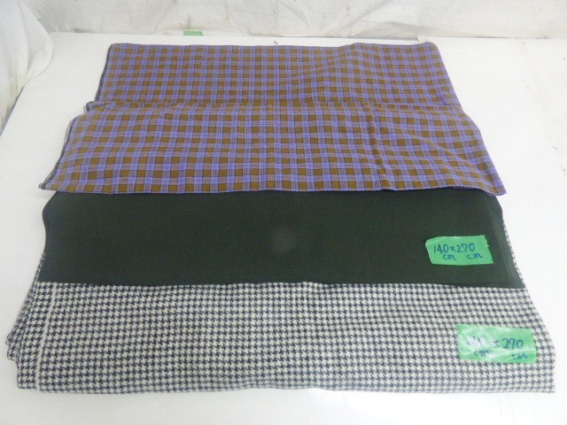 こちらは100サイズでの発送を予定しております。 送料など詳細は「梱包・発送について」欄に記載しておりますので、そちらをご確認ください。 千鳥格子柄(約):140×270cm 無地(約):140×270cm もう1点はおまけ程度です。 生地の素材は不明です。 詳細は写真でご確認ください。 写真のものがすべてです(生地以外のものはイメージのため、付属しません) こちらは中古品です。 傷や汚れなど、写真をご確認の上での入札をお願いいたします。 ※梱包について※ 緩衝材を使用した梱包をご希望の場合は60~100サイズまで100円、120~170サイズまで300円を頂戴いたします。 落札時にご希望の旨を必ずご連絡下さい。ご連絡がない場合は簡易梱包で発送致します。 簡易梱包の場合、追加費用はかかりません。 ※簡易梱包は緩衝材等を使用しませんのでご了承下さい。 素人なりに配慮した梱包を心掛けております。 しかしながら配送中にどうしても欠け、ひび、割れ等発生する場合がございますが免責とさせて頂き、返金等は致しかねますのでご了承・ご了解の上ご入札下さい。 詳しくは梱包・発送についてをご確認下さい。 商品ランク(ランクの記載のない商品もございます) A:新品・未使用品。 B:未使用に近い状態です。 C:中古品ですが目立った傷や汚れありません。 D:中古品の為、やや傷や汚があります。 E:中古品の為、傷や汚れ等の使用感が多数あります。 F:全体的に状態が悪い。 ☆個人での主観評価となりますので参考程度にしてください。 | ||||||||||||||||||||||||||||||||||||||||||||||||||||||||