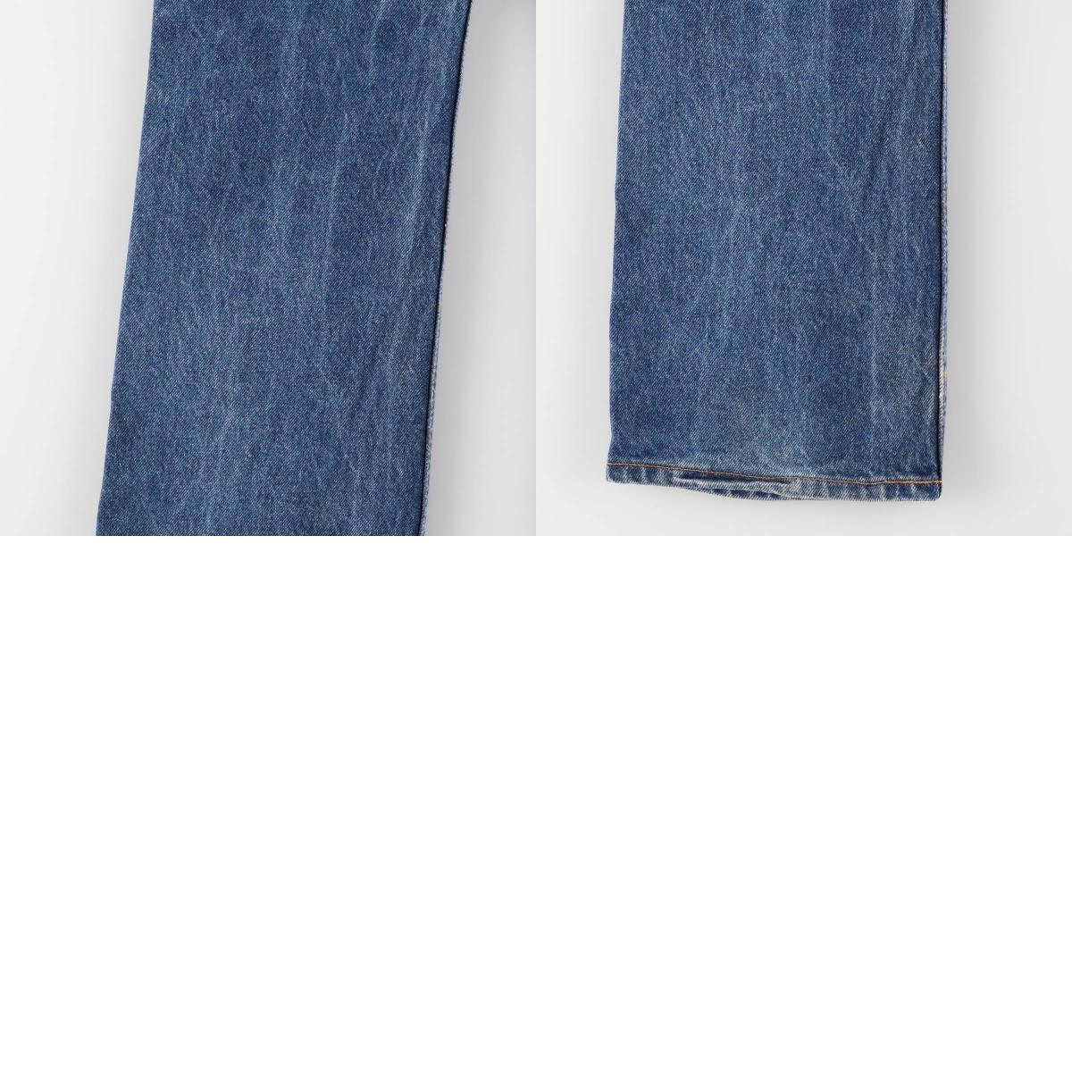 表記サイズ: W31L31 ウエスト: 80cm 股上: 30cm 股下: 79cm もも周り: 60cm 裾周り: 47cm ![]() | ![]() ランク:C USEDデニムですので使用感、擦れ、色落ちなどございますが、まだまだご愛用していただけます。 古着という事をご理解の上ご注文よろしくお願いします。 【状態追記】 ●前、両腿・両膝・両脛・両裾に汚れ ●後、ヒップ・両ポケット・両腿・左ふくらはぎ・左裾に汚れ ●前、両ポケット口・両ポケット内側に汚れ |