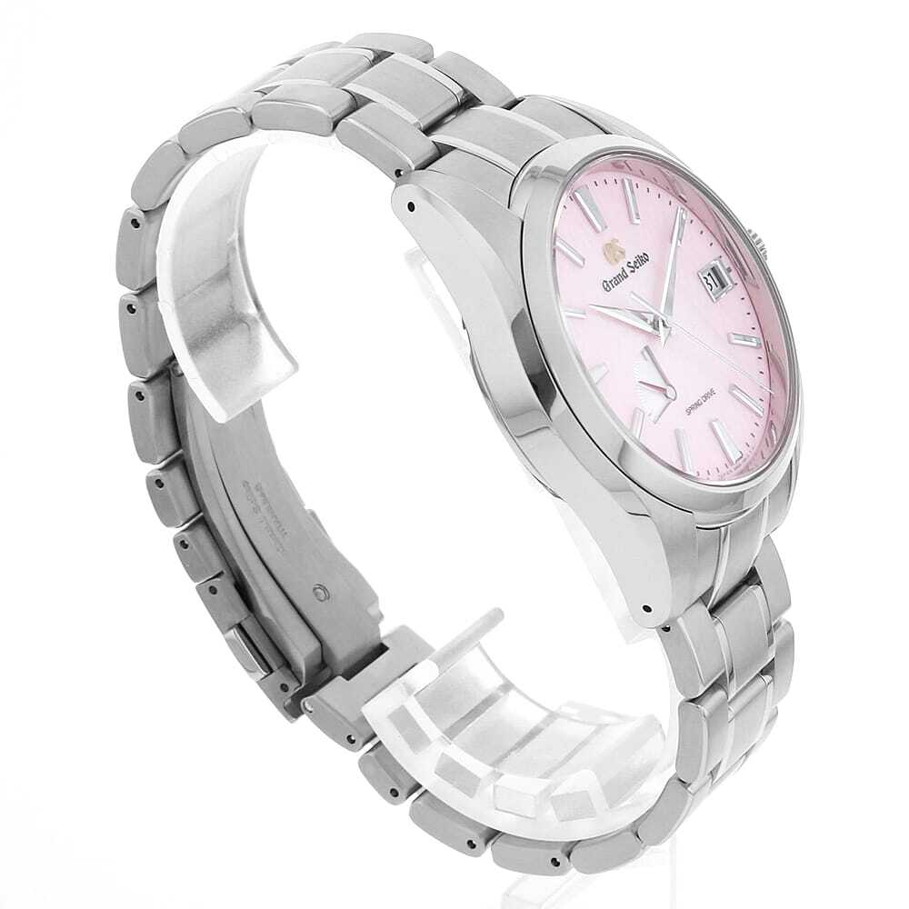 モデル情報 | 2004年に誕生したグランドセイコー初のスプリングドライブモデルSBGA001/003のデザインを継承した、「キャリバー9R」の誕生20周年を記念する限定モデルです。穂高連峰で見られる、朝焼けに美しく染まる雪原のようなグラデーションダイアルを採用しています。通常のチタンよりも傷がつきにくいブライトチタンを採用し、心地よい装着感を創出しています。 |