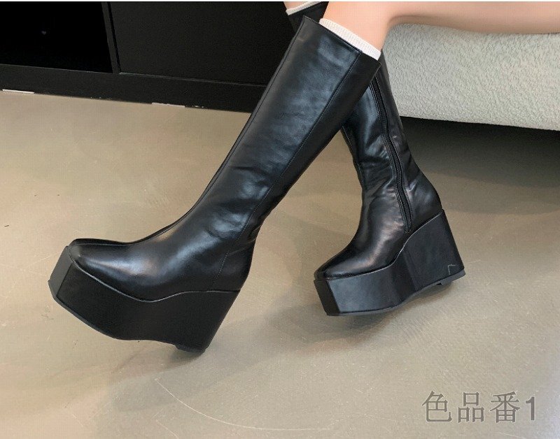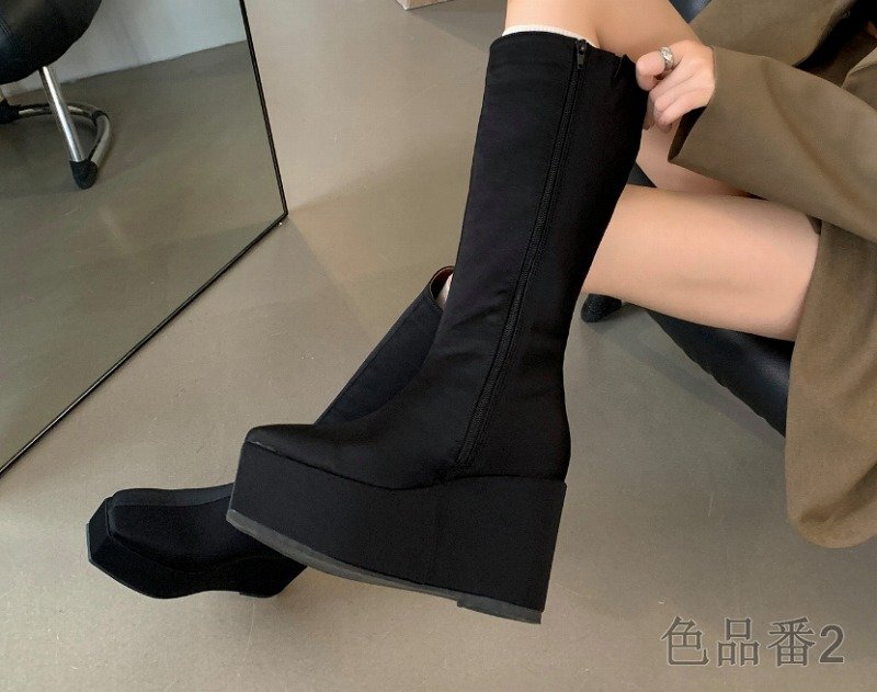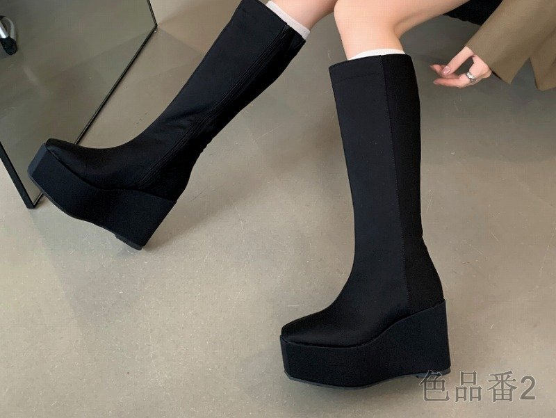 ブーツ 厚底 切り替え 無地 シンプル 【36】22.5~23cm 色品番2ブラック