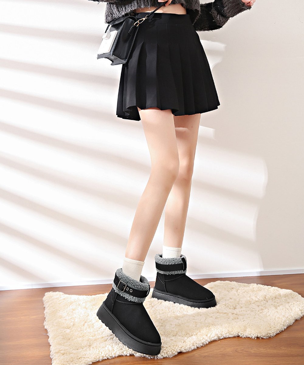 寒い季節にぴったりで、足元をしっかり保温し、暖かく快適な裏起毛フェイクムートンブーツ。
