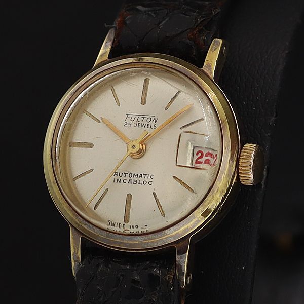 稼働 フルトン 6156 AT/自動巻き シャンパンゴールド文字盤 デイト レディース腕時計 OSW 2000000 NSK