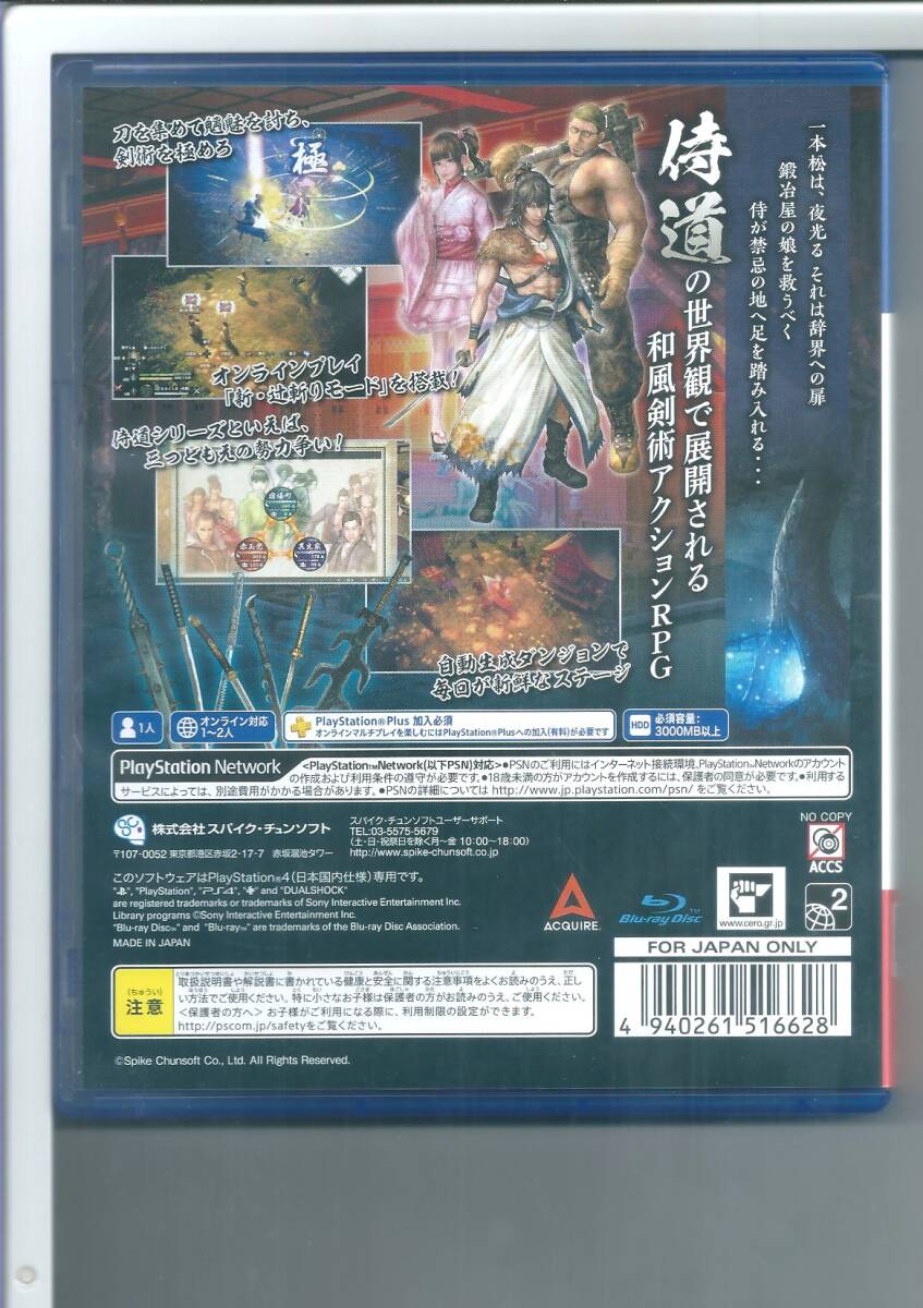 ●JANコード4940261516628 t1 ☆PS4 侍道外伝 KATANAKAMI ●商品の状態 ソフトは使用感少なく状態良好ですが、ケースにスレ・イタミがあります。説明書ははじめから付属していません。 |