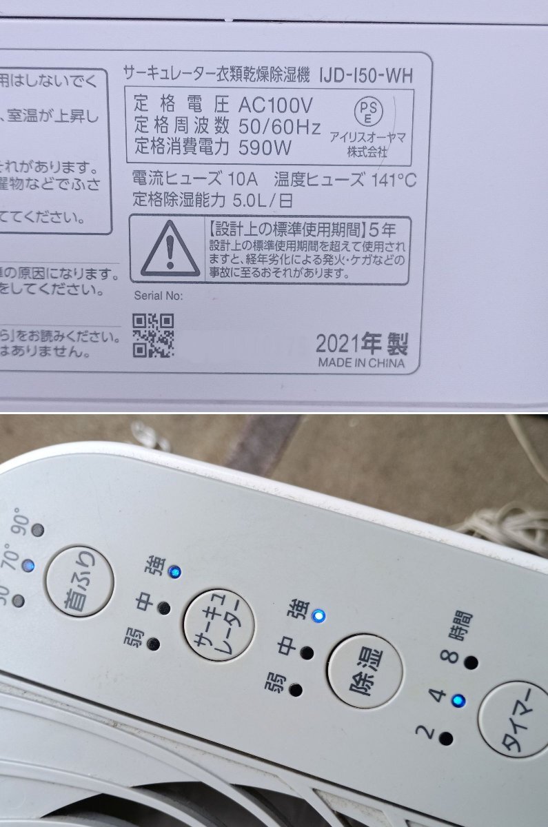 ◎綺麗【アイリスオーヤマ/IRIS OHYAMA サーキュレーター衣類乾燥除湿機 IJD-I50-WH デシカント方式 2022年購入 ホワイト/グレー】Q09104