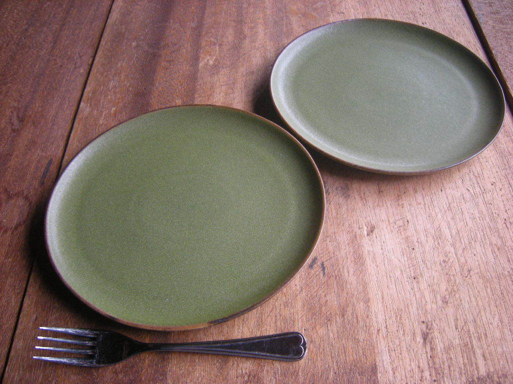 「小卯◎美濃焼【新品・未使用】抹茶釉 モスオリーブ パンプレート 楕円皿 7.5寸(23㎝x21㎝x2㎝)1枚から *お勧め*新作*