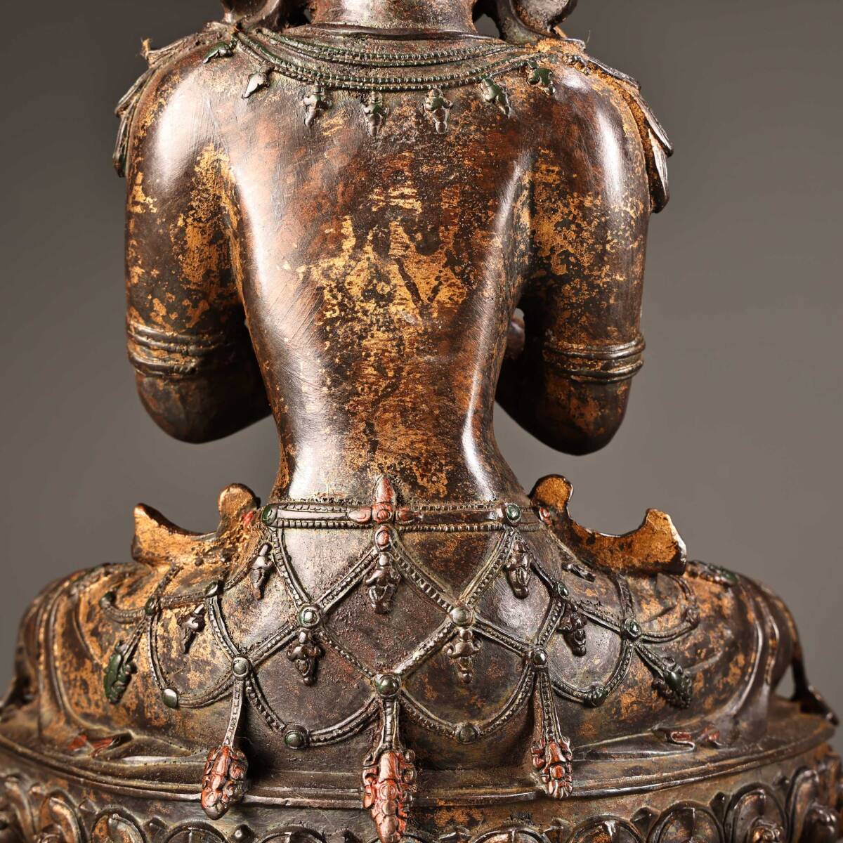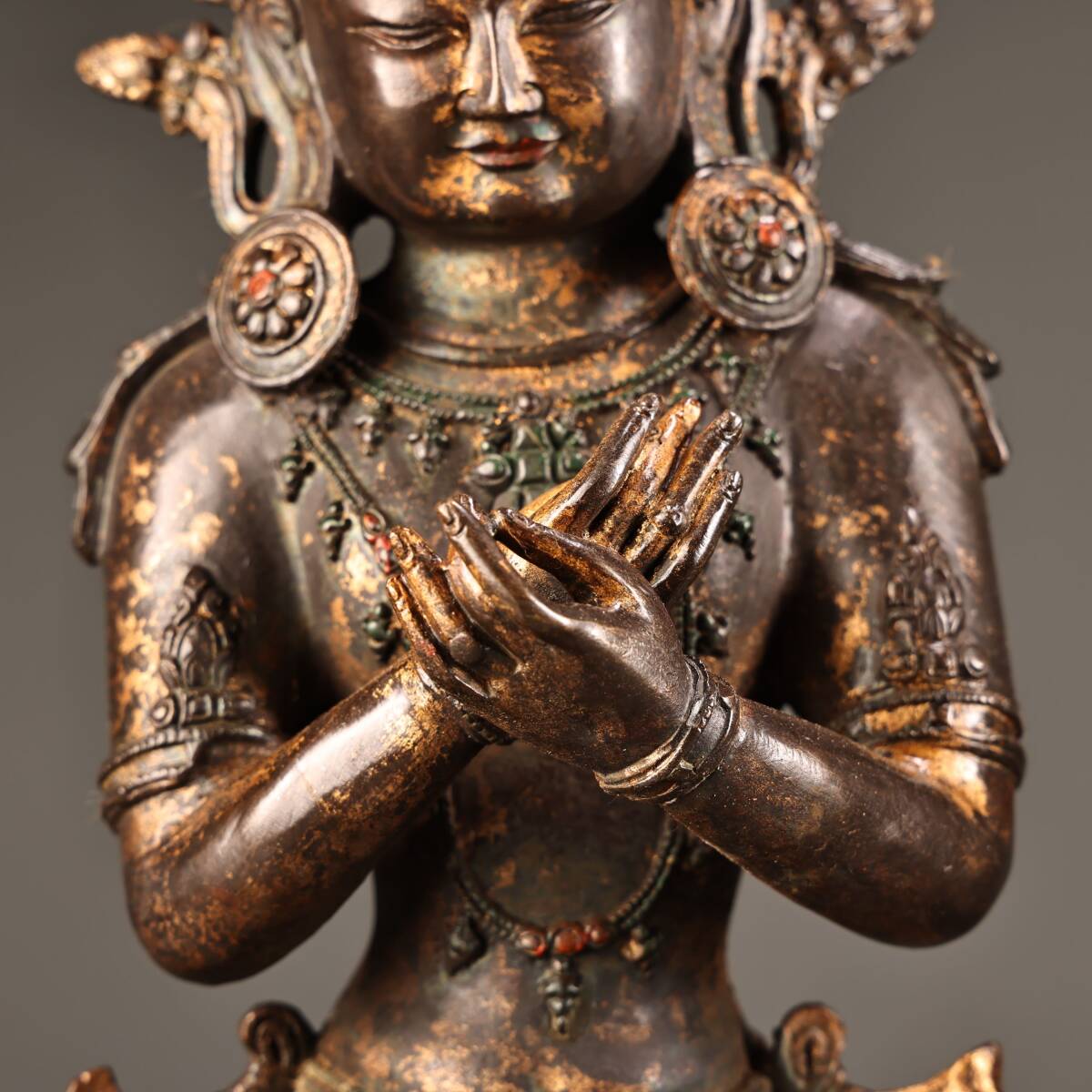 *珍品旧蔵* 清 純銅 全銅 高浮彫鏨刻泥金 藏傳金剛總持 仏像 奉納されていた 供養品 銅製品 銅器 極細工 中国古玩 骨董品 古美味 H49