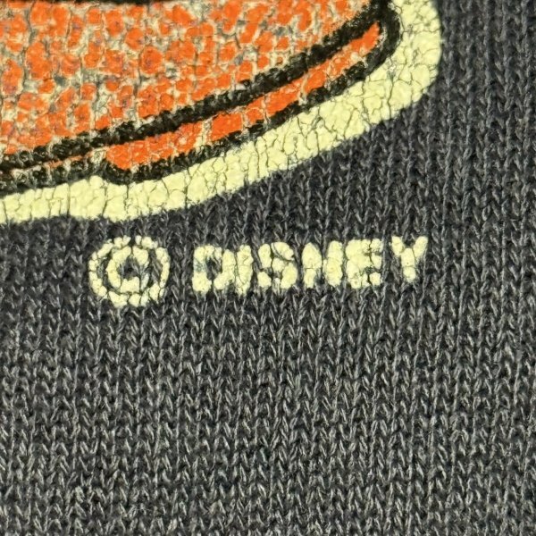・全体的に色褪せしており、右肩にダメージ、プリントのヒビ割れが見られます。