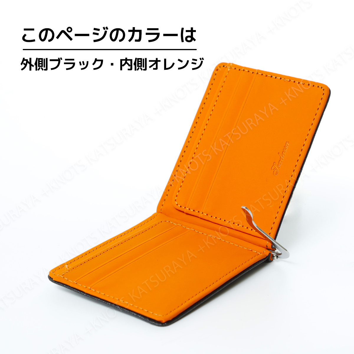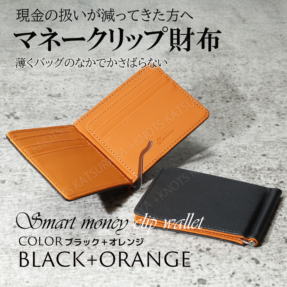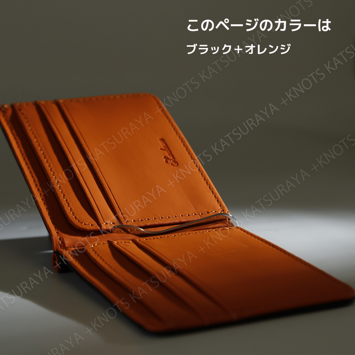 ミニ財布 マネークリップ オレンジ メンズ レディース 二つ折財布 軽い 薄い 小さい スリム コンパクト スマートウォレット レザーa130