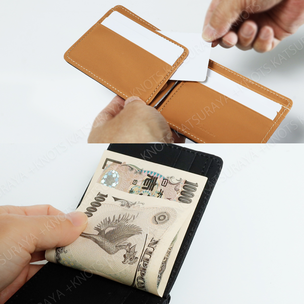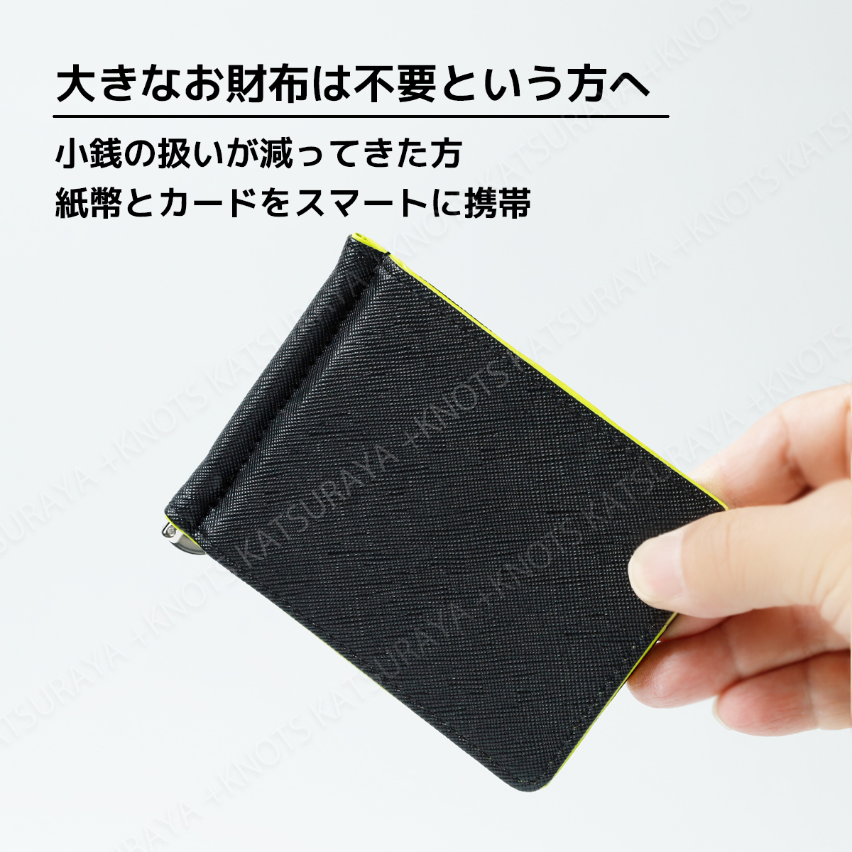 現金を扱う機会が減ってきた方、大きな財布から乗り換えを検討中の方におすすめ、使いやすさを追及したシンプルでコンパクトなマネークリップ財布です。最低限のカード類と予備の紙幣を収納するための簡易財布、ズボンやシャツのポケットにすっぽり収まりバッグの中でもかさばりません。