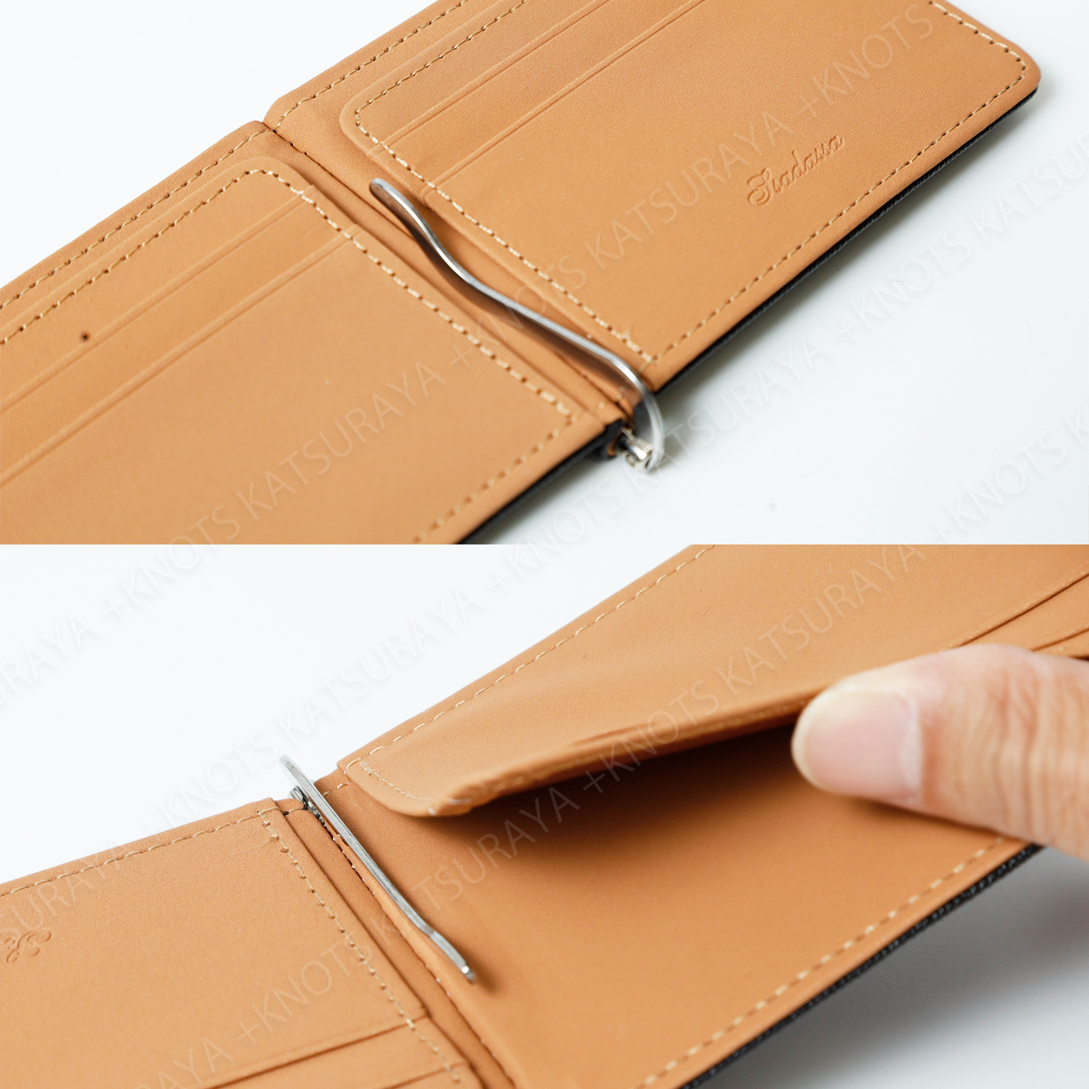 収納:カードポケットx4、フリーポケットx2、マネークリップx1、