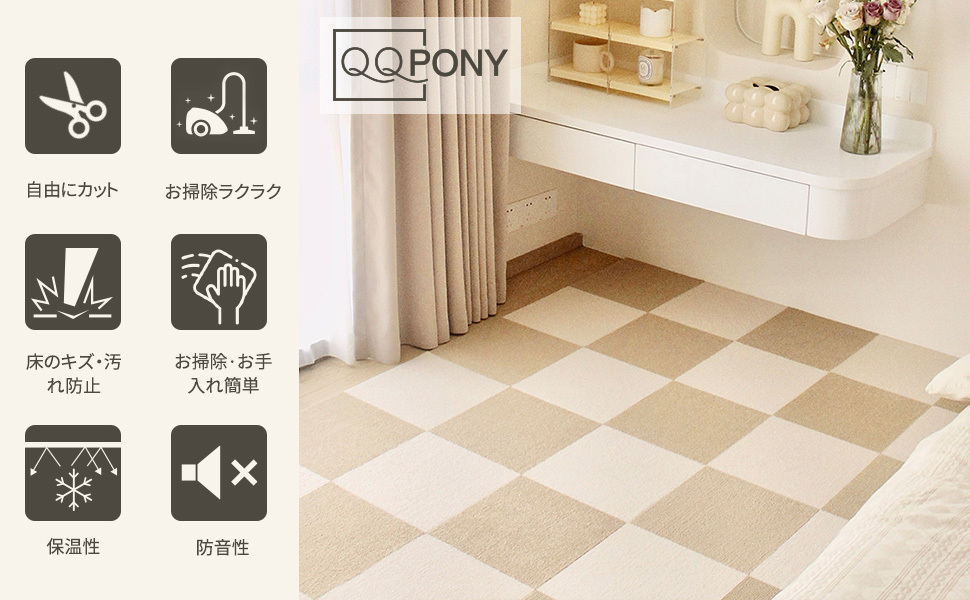 さらに、ハサミを使って簡単にカスタマイズができ、部屋の隅や壁際などの場所でもぴったり敷き詰めることができます。