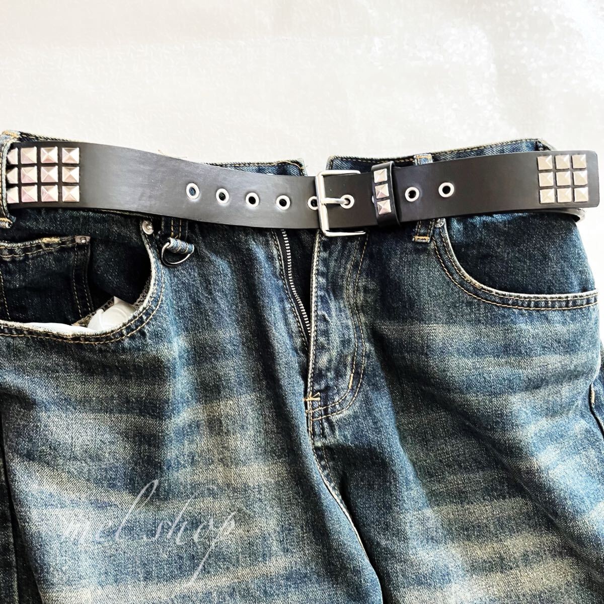 スタッズ ベルト ロックファッション 三連ピラミッド鋲 パンクファッション スタッズベルト パンク ストリート ジーンズ カジュアル y2k ブリンブリン メンズ レディース リベット