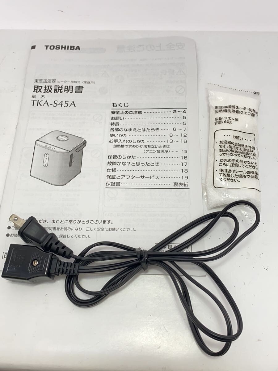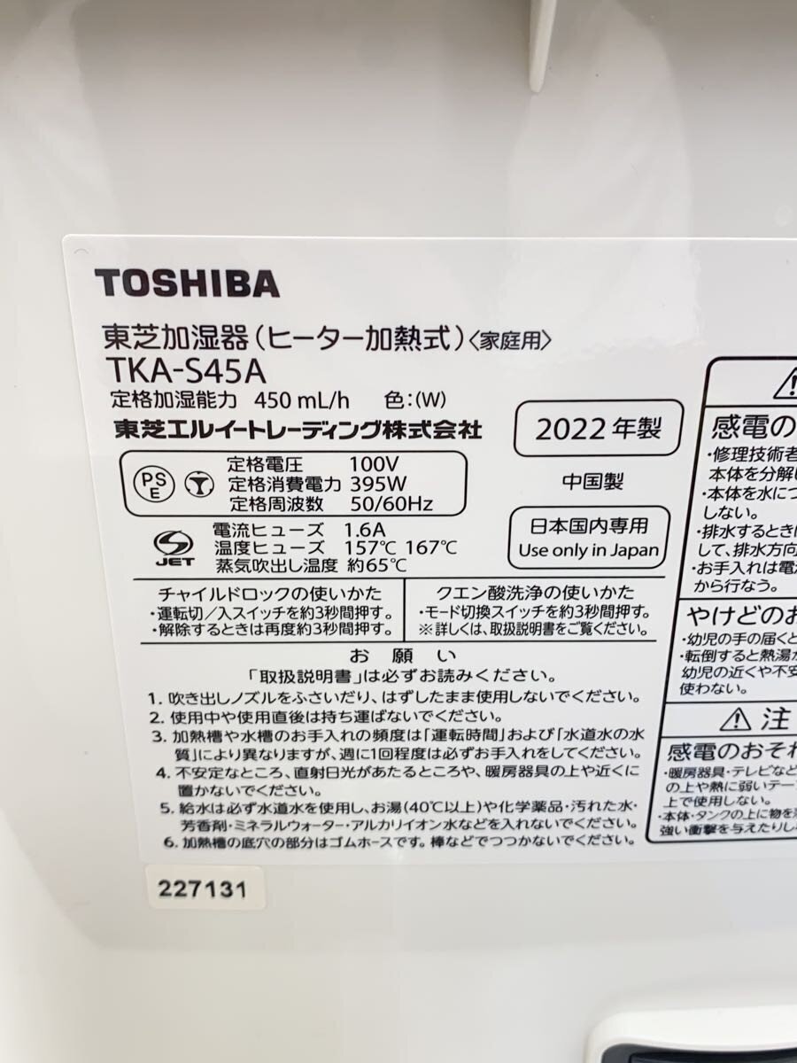 TOSHIBA/ヒーター加熱式加湿器/TKA-S45A/加湿量約450ml/h/タンク容量4L |