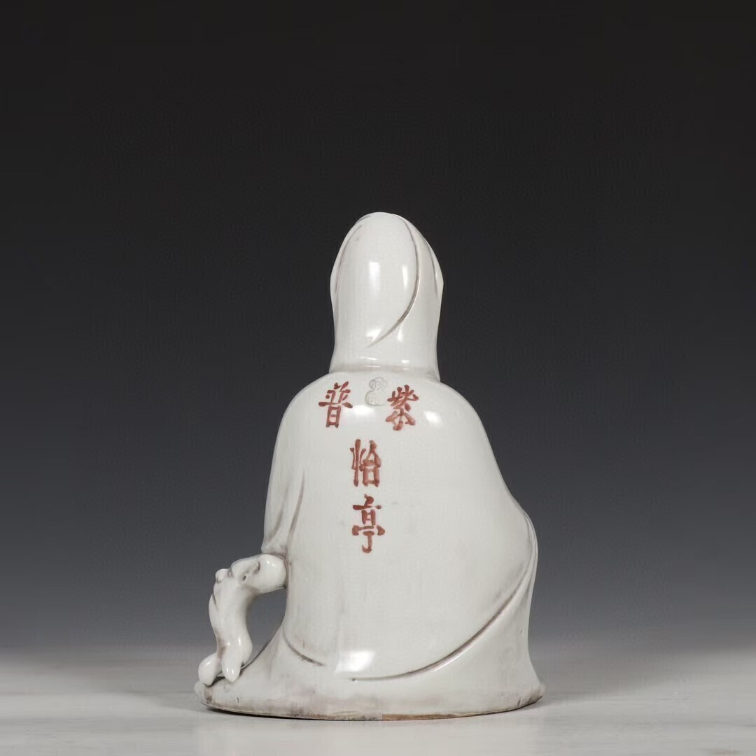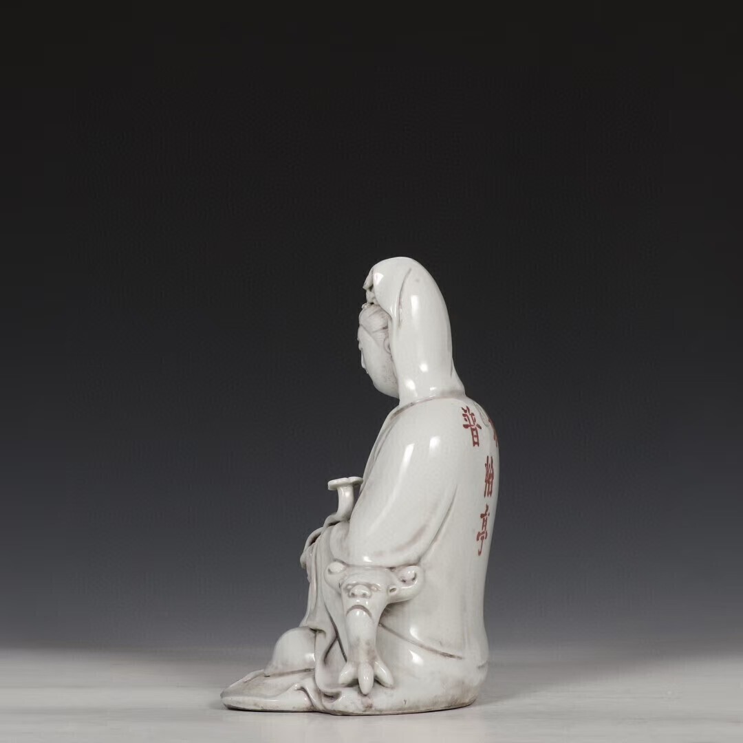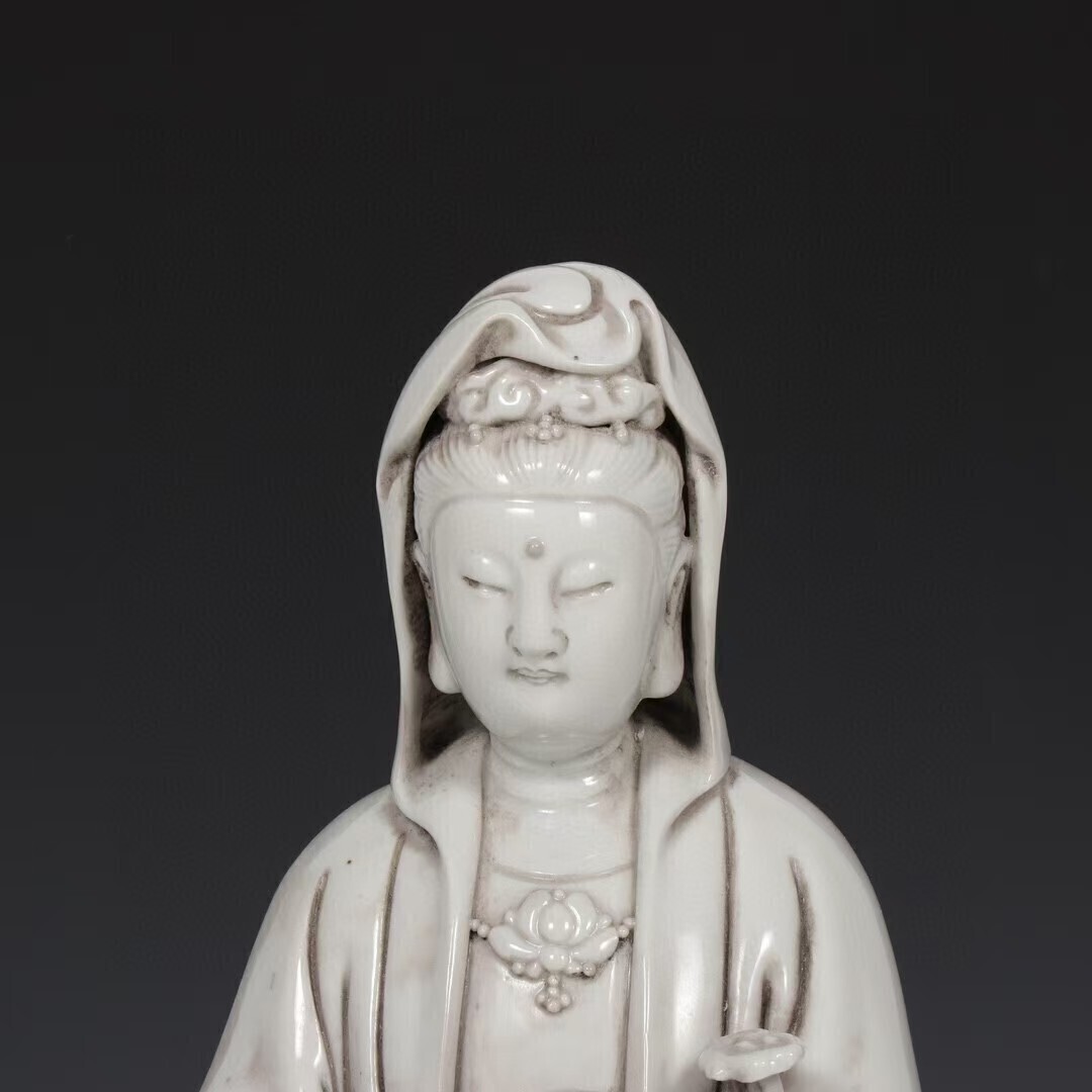 【美の継承】中国古美術 明代 德化窯 牙白釉 観音坐像 如意持手 中国古陶磁 骨董品 時代物 仏像 置物 收藏品 風水 木箱付きR07072421