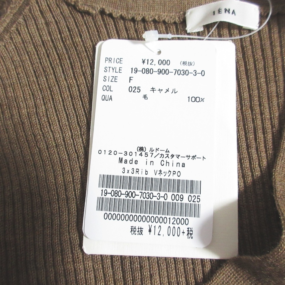 未使用 IENA イエナ 3X3 リブVネックプルオーバーニット セーター 19080911703030 F ブラウン