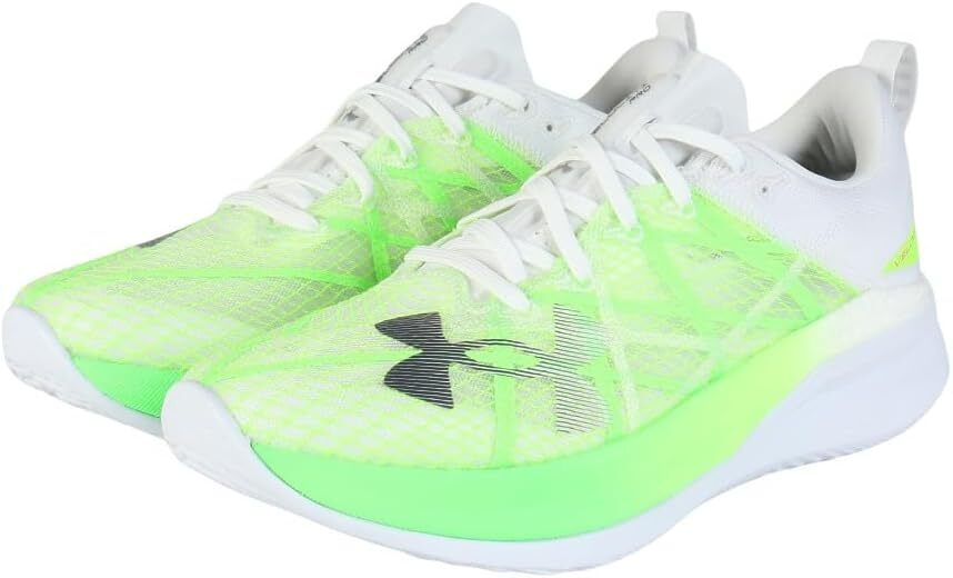 UA独自のアッパーテクノロジー、ワープアッパーは、水平と垂直のテープラインが足の上で多くのシートベルトの役割を果たし、足の固定と軽量性を提供する。
