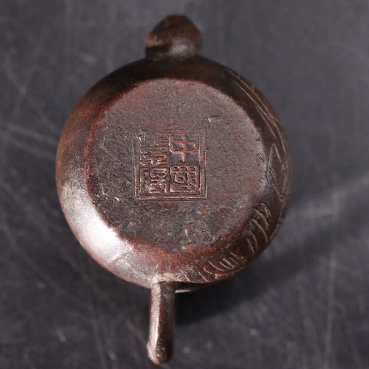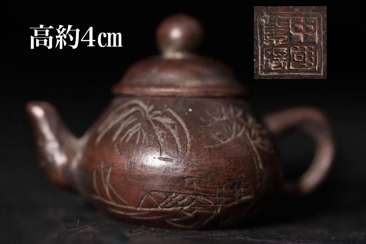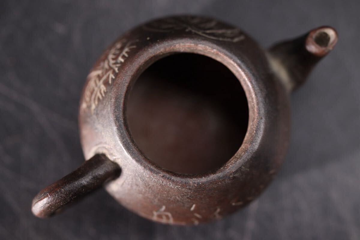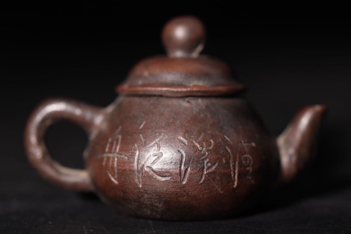 極小 中国-- 底款 紫砂 草 ・ 漢詩彫 急須 / 中国美術 茶器 茶壺 煎茶道具 検索: 紫泥 朱泥 宜興紫砂 .G2491 |