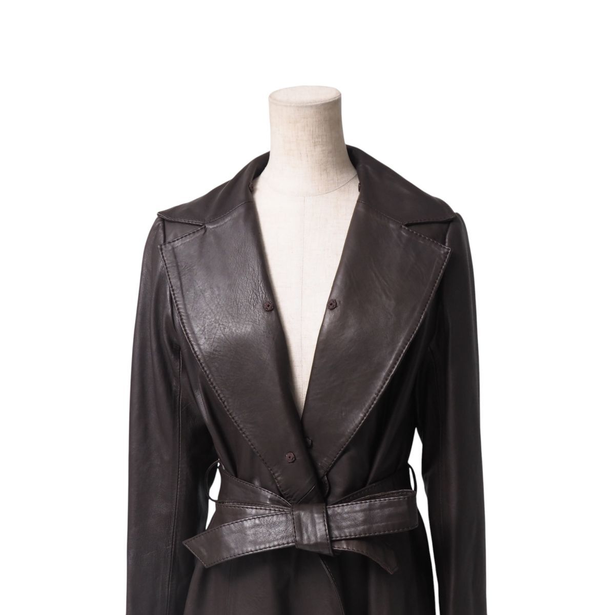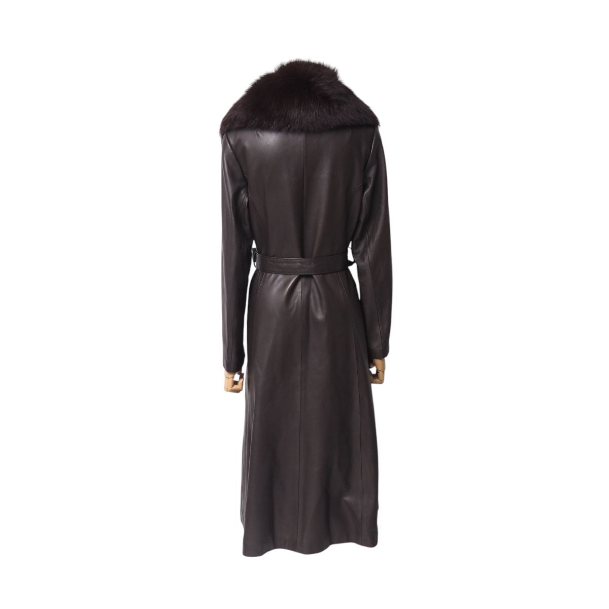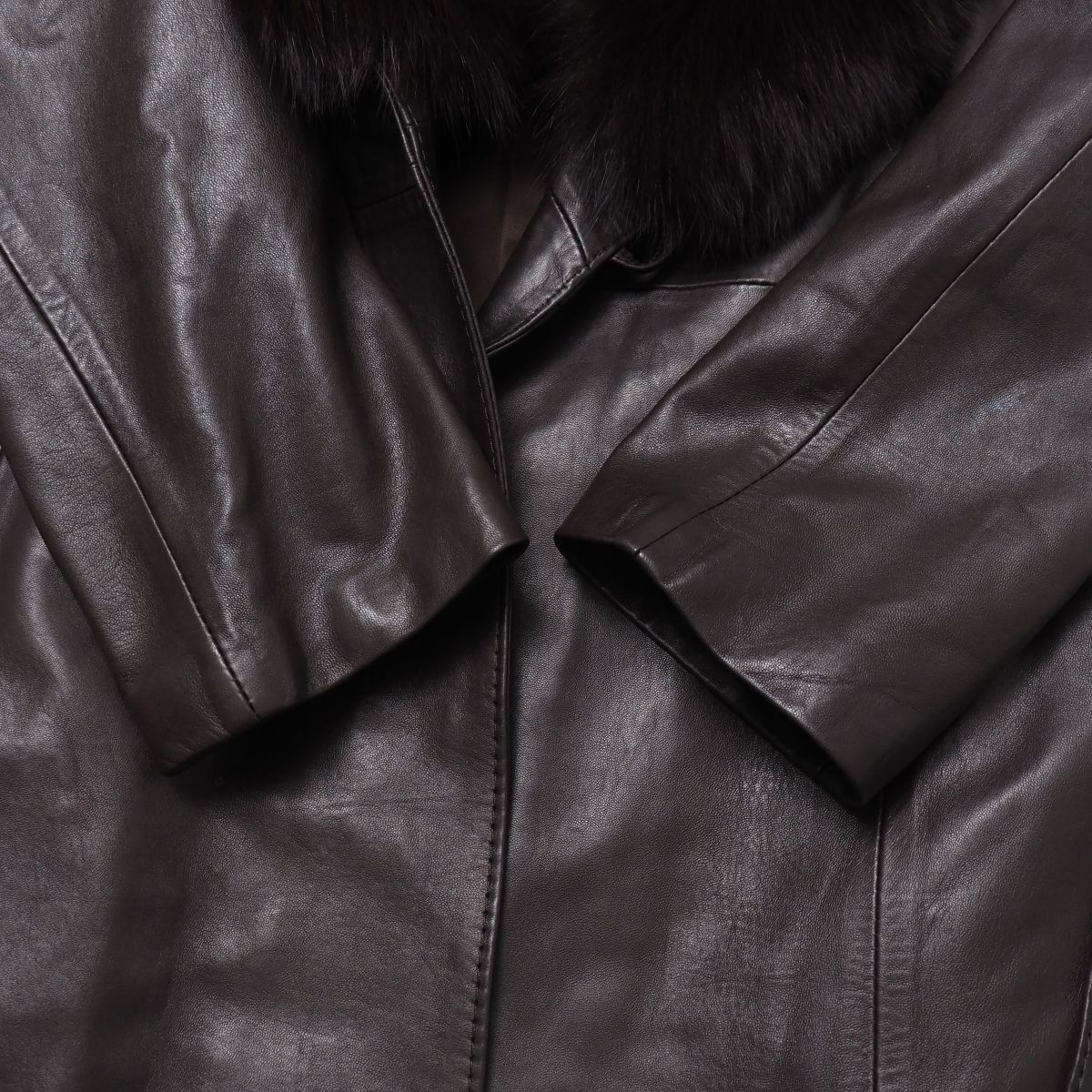 | GS1711▲Partina レザー 本革 フォックスファー襟/着脱可 ベルテッドコート ロングコート レザーコート サイズ13 ダークブラウン | |||