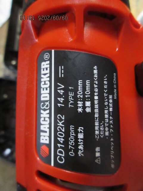 ブラック ディッカー CD1402K2 充電式ドリル  14.4Vバッテリー2個付き