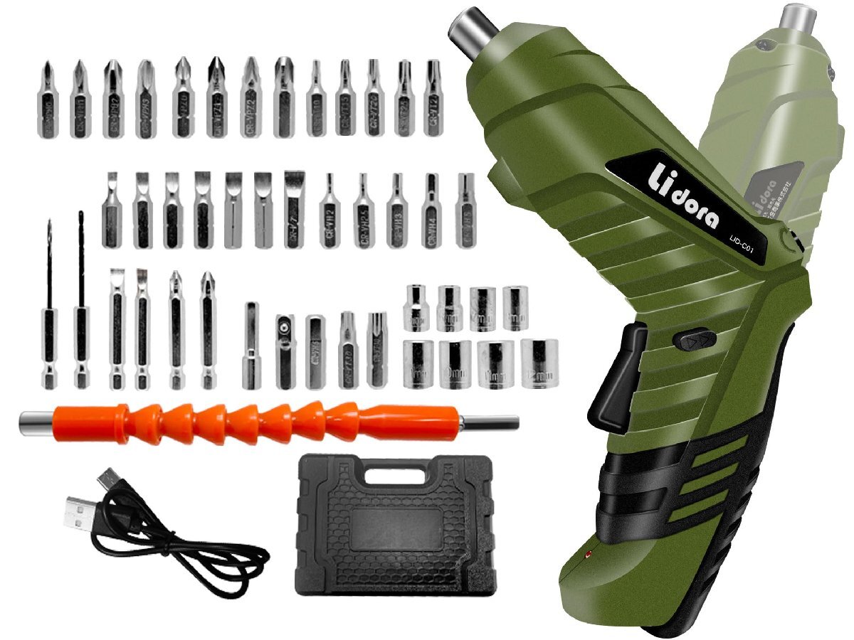 【豊かな付属品】ビット45個+本体+USBケーブルの47点セット。DIYに必要なほとんどのビットがそろっています。