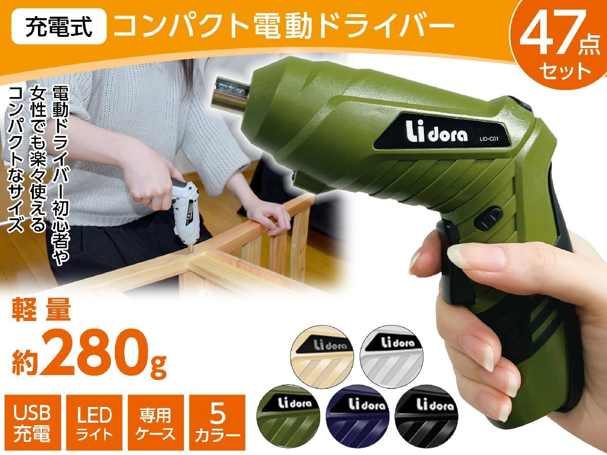 【SALE期間中】 LEDライト付き 工具 47点セット 電動ドリルドライバー 小型 USB充電ケーブル付き 正逆転切り替え 電