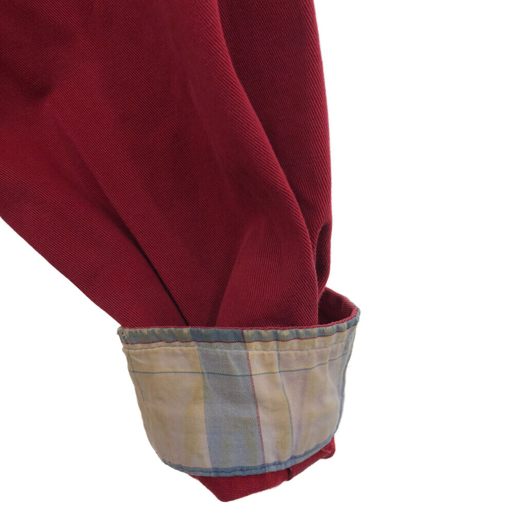 【商品管理番号】 Q0345 【ブランド】 TOMMY HILFIGER/トミーヒルフィガー 【サイズ】 XL XL 【実寸サイズ】 肩幅:約52cm 着丈:約67cm 身幅:約60cm 袖丈:約64cm 【主な素材】 表地 : コットン 【色】 レッド 【仕様】 【状態】 汚れ:袖先、腹部 襟裏地/袖先裏地 キズ:裾 特記事項:使用感あり 全体的に汚れ有 |
