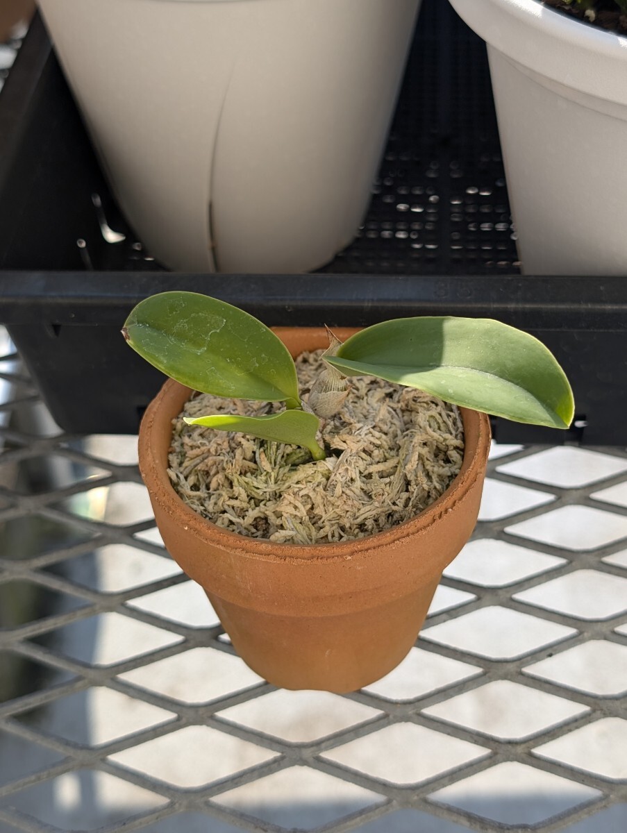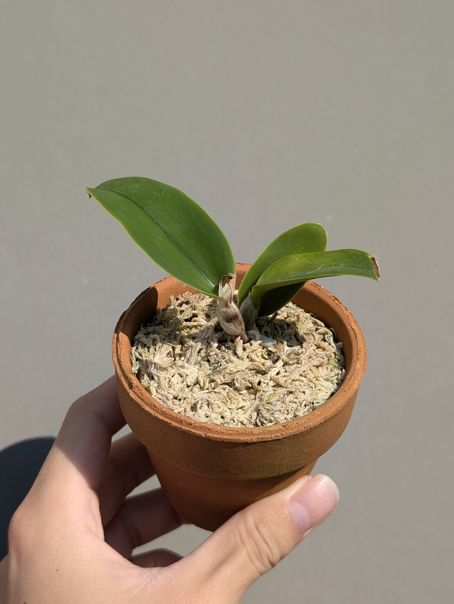 リップの大きくフラットな大輪整形花と雫個体の交配です。