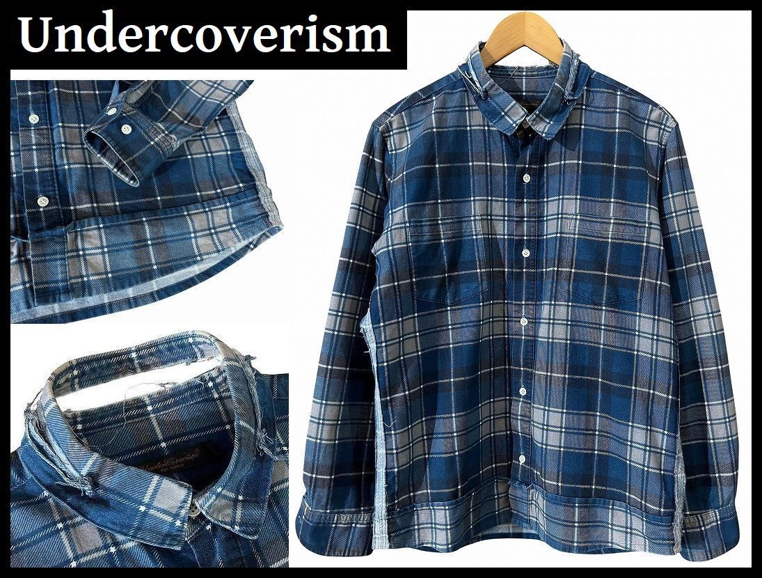 送無 希少 03SS SCAB期 UNDERCOVER アンダーカバー 瘡蓋期 ツギハギ ダメージ 加工 パッチワーク アウトシーム 長袖 チェック ネルシャツ M