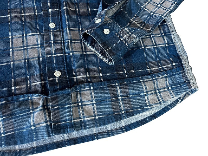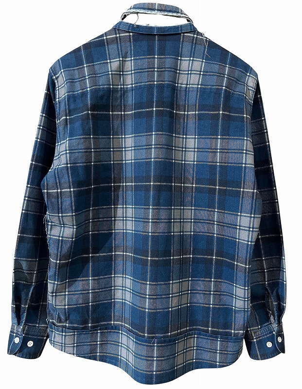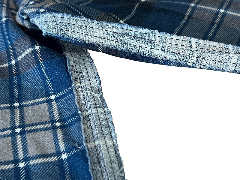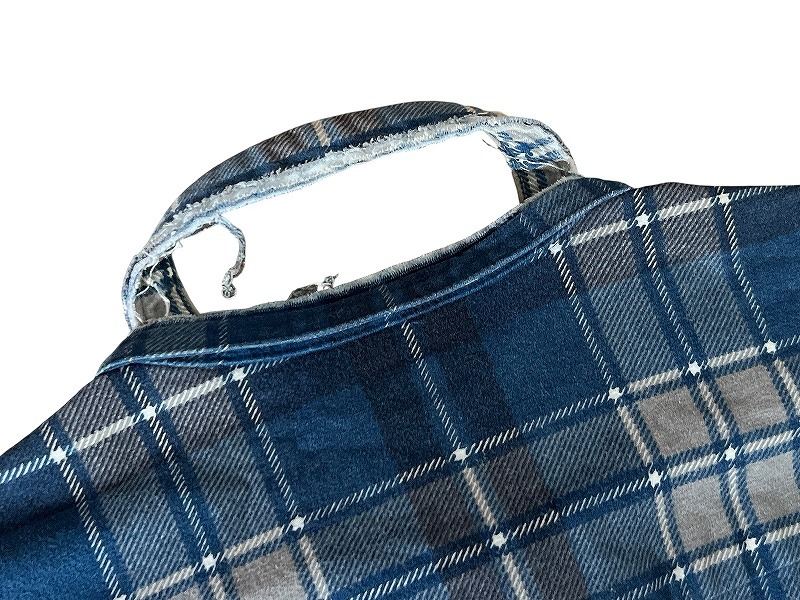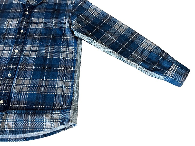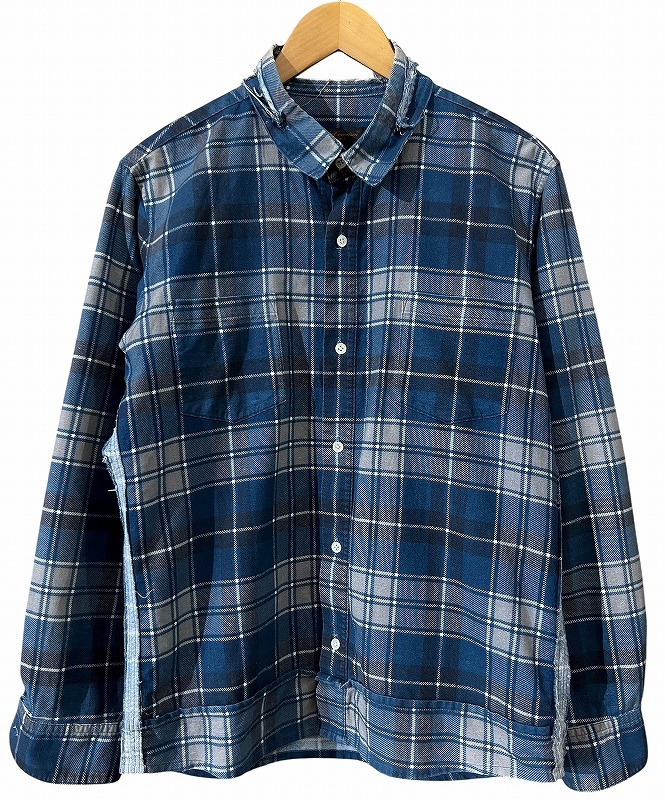 パッチワーク アウトシーム 長袖 チェック ネルシャツ 青 M