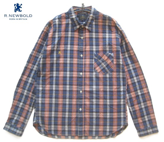 美品!! R.NEWBOLD ライオン刺繍 胸ポケット付き チェック柄シャツ