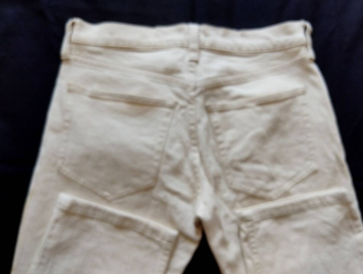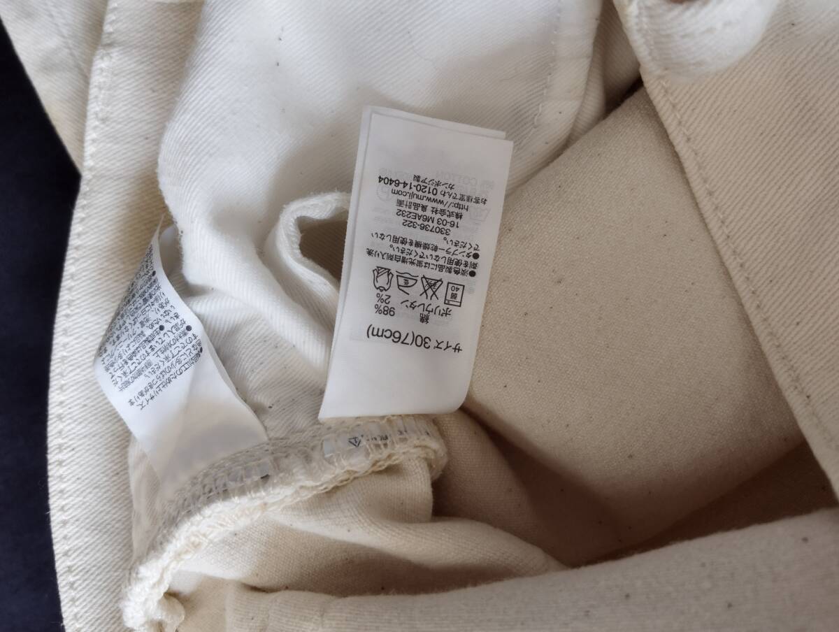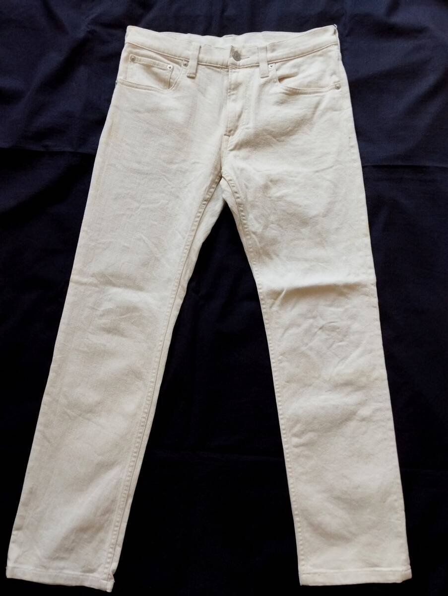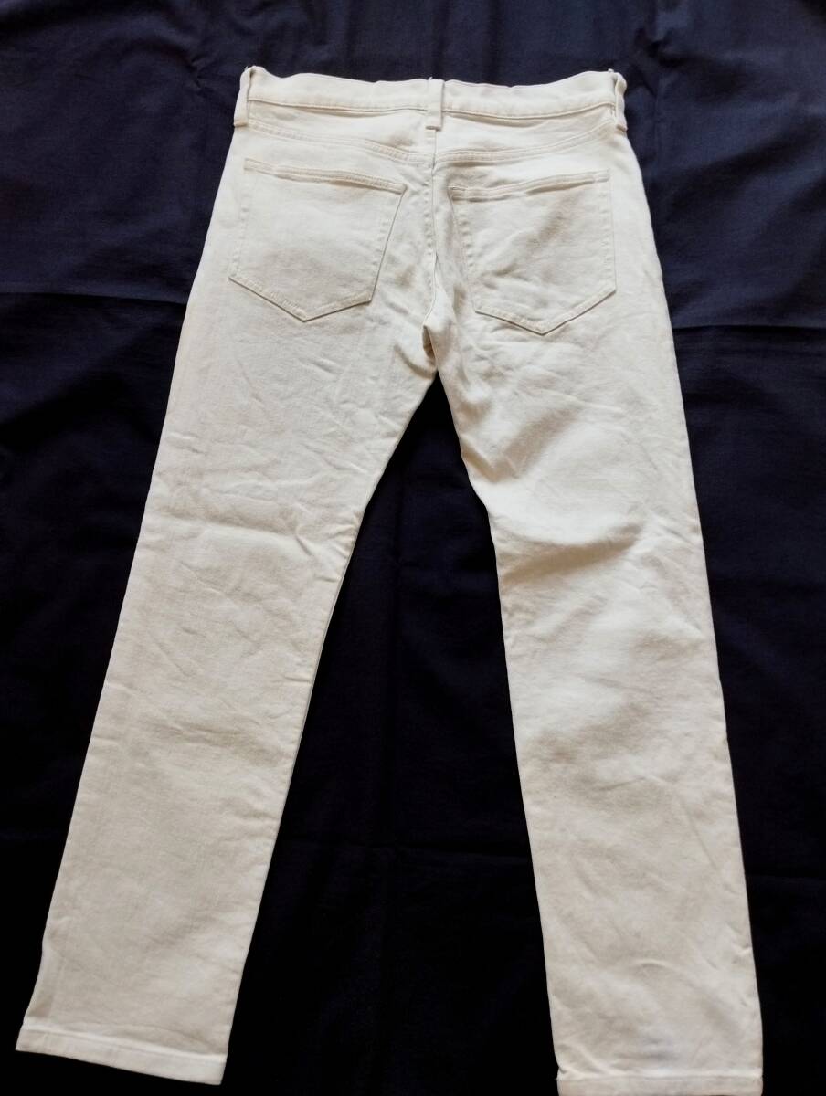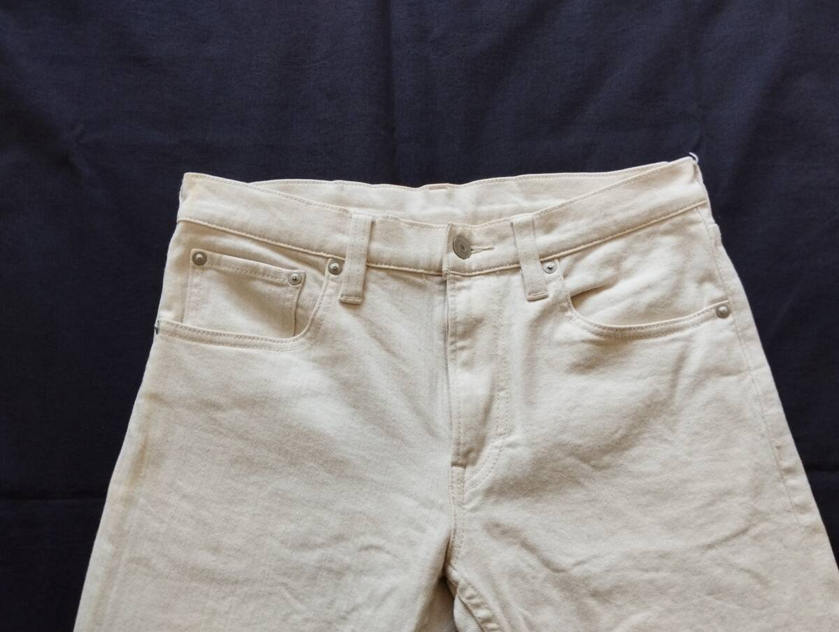 ウエスト78cm、股下72cm、股上(前26.5cm、後29cm)、腿幅(股から10cmの位置で)25cm、裾幅17.8cm