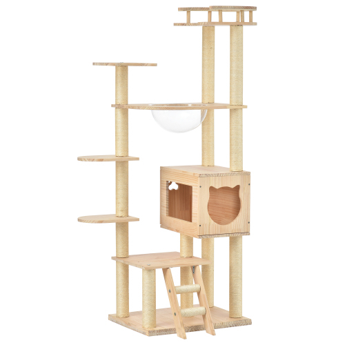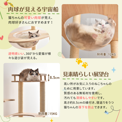 キャットタワー 透明宇宙船 頑丈 据え置き おしゃれ キャットタワー 木製 可愛い麻紐 爪とぎボール 猫ベッド 安全安心 ペット用品