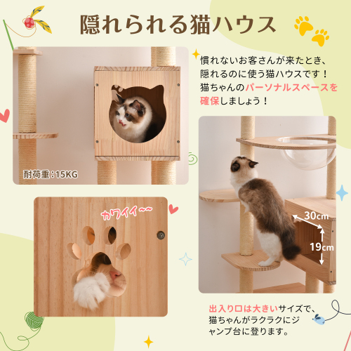 • ◆ 01 木製キャットタワーの選ぶ理由 高い耐久性 ア.お手入れ簡単 水が濡れたり、汚れがついた時は、雑巾で軽く拭くだけで綺麗になります。 イ.季節を問わず 夏になったら木の涼しさを楽しめる。 冬になったらマットを敷くと、猫の冬のいい場所になる。