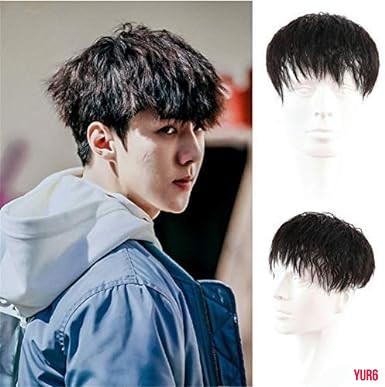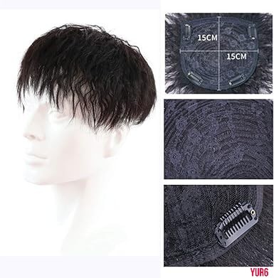 おでこ&トップカバーに カールタイプ ヘアピース クリップ 人毛 パーマ メンズ かつら お洒落 普段使い 機械植え ナチュラルブラック