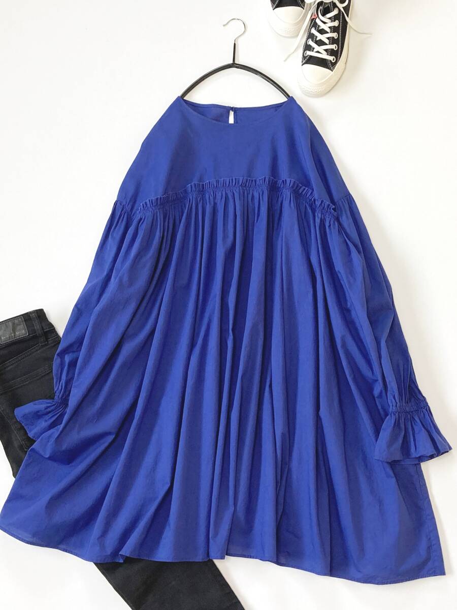 たっぷりとギャザーを寄せたことで肌離れもよく、ふわふわとしたシルエットが魅力◎