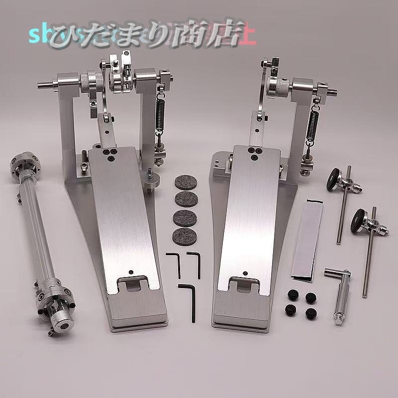 シルバー ドラムツインペダル ジャズドラム用ダブルフットペダル バスドラム練習用 ペダルアクセサリー