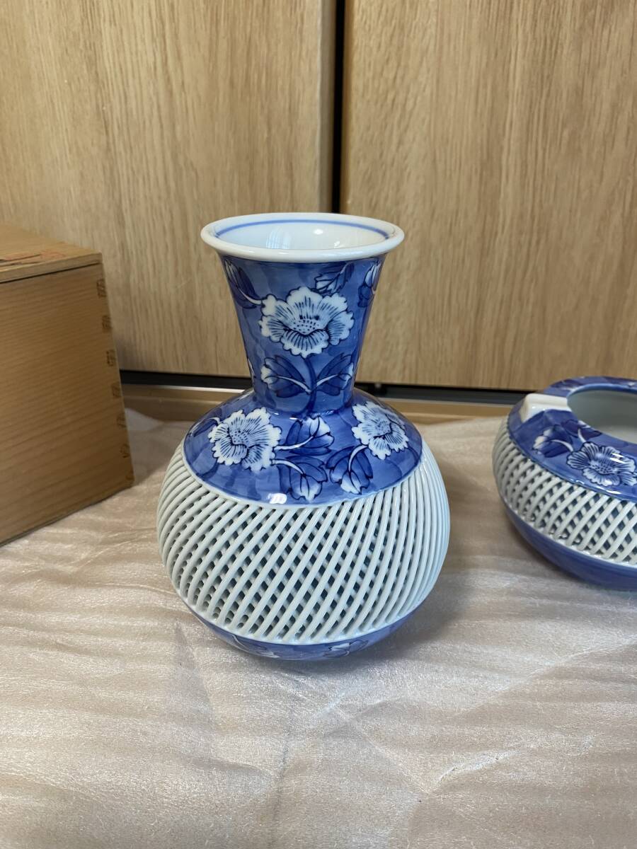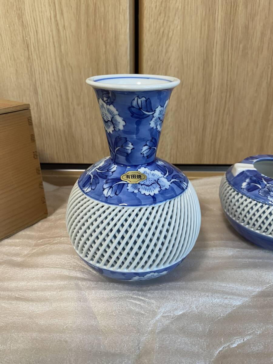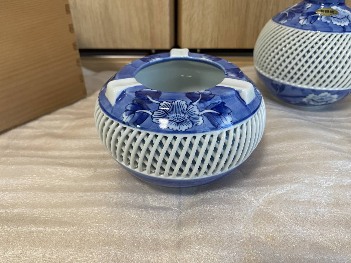 琴峰作 有田焼 応接揃 花瓶 灰皿 網目 中古未使用