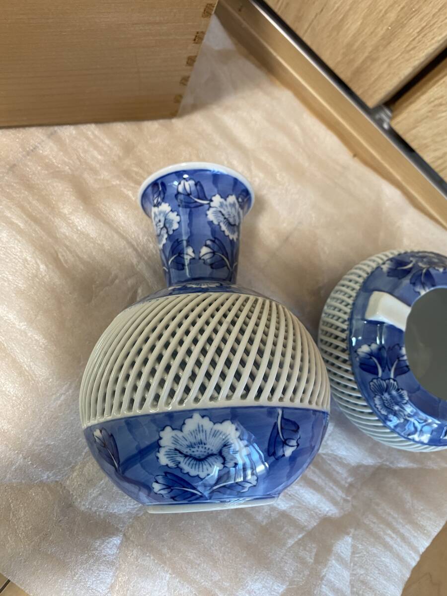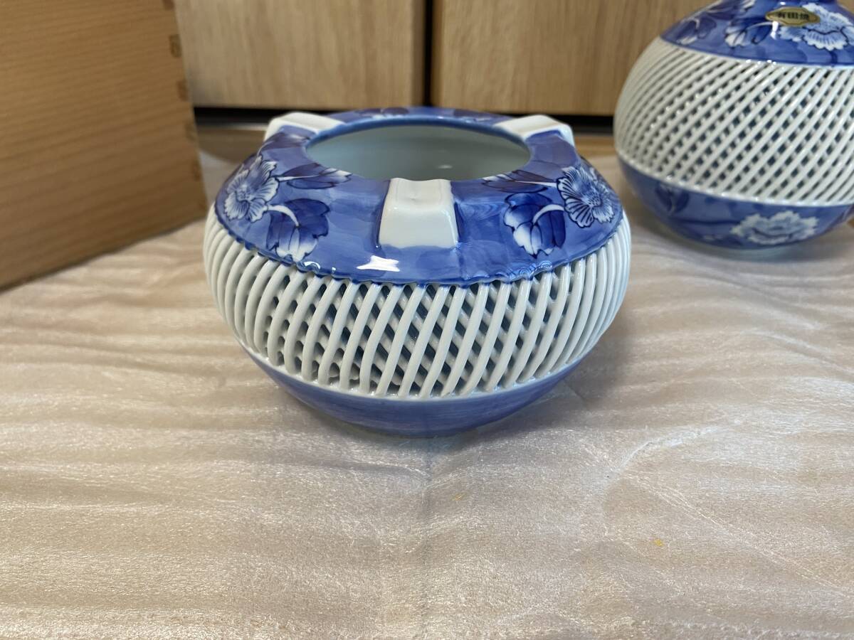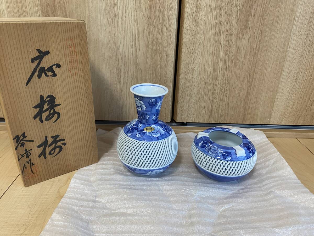 琴峰作 有田焼 応接揃 花瓶 灰皿 網目 中古未使用