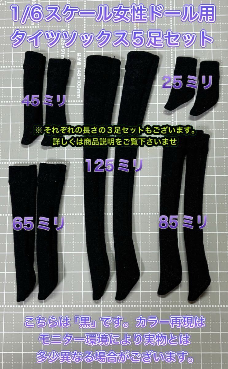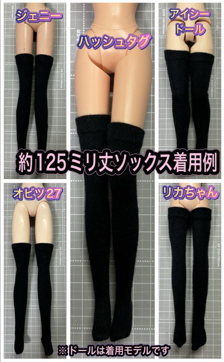 リカちゃん、ジェニー、ネオブライス、アイシードール 、オビツ27女性ボディ、ハッシュタグボディなどが着用出来る、薄手の化繊ソックス長さ違い、平置きで約125ミリ、85ミリ、65ミリ、45ミリ、25ミリの5足セットです。
